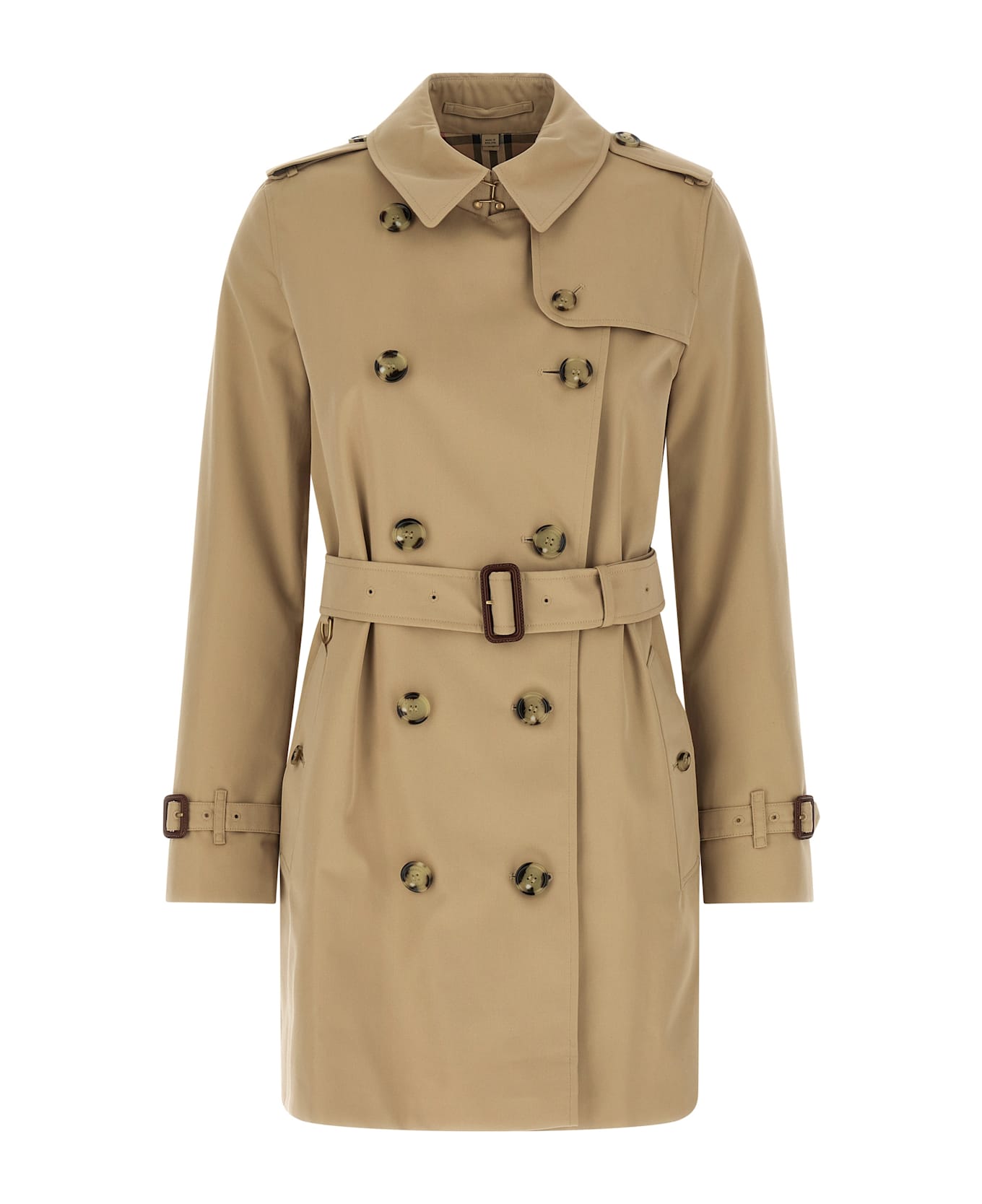 'Kensington' short double-breasted cotton trench coat with button closure, belt at the waist, pockets, long sleeves, back vent. SUSTAINABLE: This product is made of organic cotton. Composition: 100% cotton