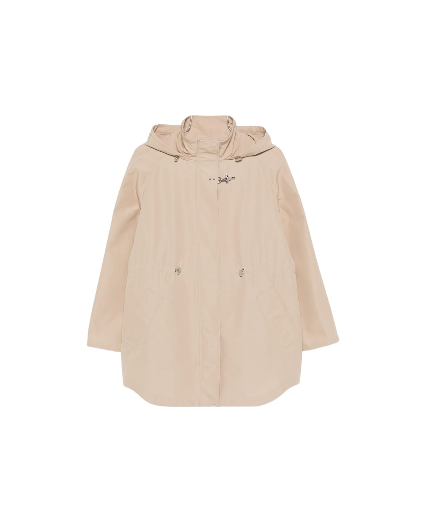 beige hooded toggle detail zip fastening side pockets drawstring waist