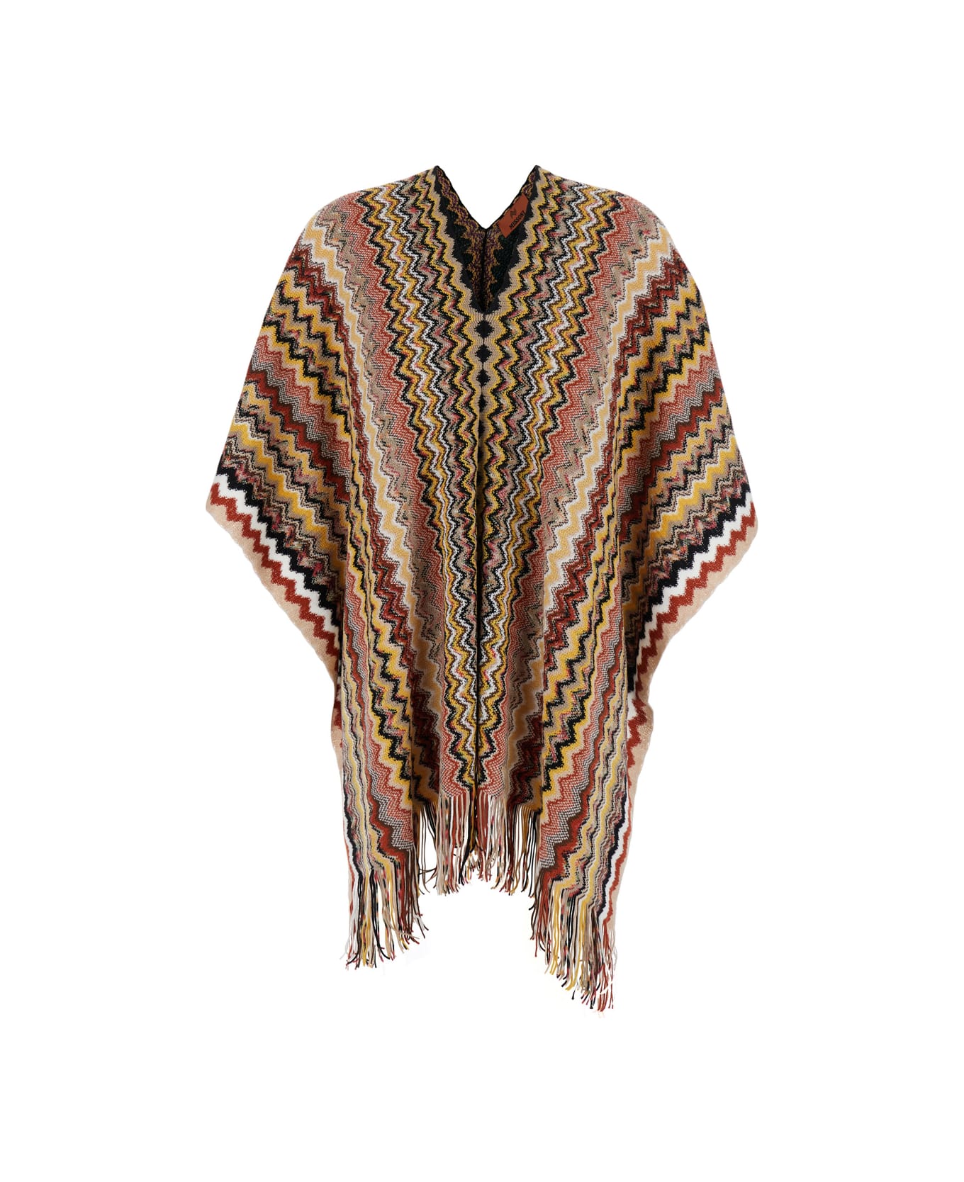 Multicolor Cape With V Neck And All-over Zigzag Motif In Viscose Blend Woman