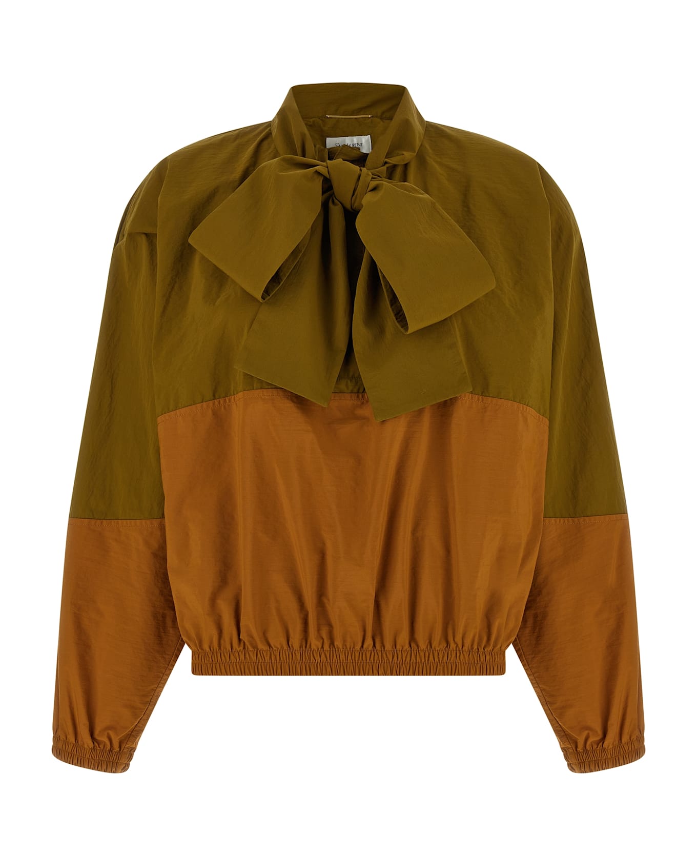 Color-block anorak in nylon faille with lavallière collar, front snap button closure, long sleeves with elastic cuffs and dropped shoulders, elastic hem, unlined.