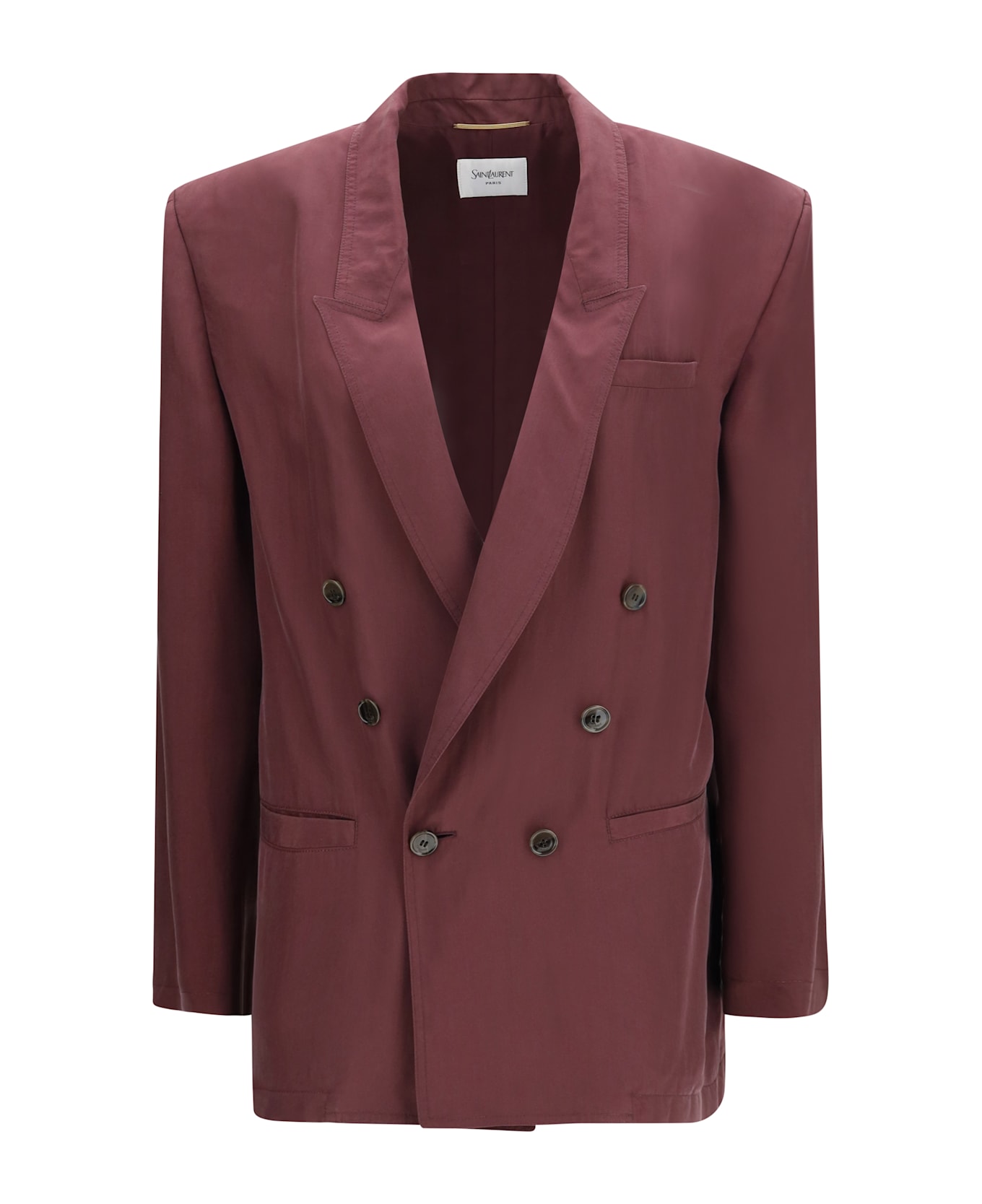 The double-breasted fluid silk blazer by saint laurent stands out for an oversized silhouette that interprets urban street style with contemporary elegance. the blazer model by saint laurent features peak lapels and oversized shoulders that define the structure of the garment. the button closure and slit pockets introduce essential tailored details. long sleeves and a straight hem complete the design, while the fluid silk construction enhances lightness and movement. the saint laurent blazer stands out for its short and sophisticated silhouette. Composition: 100% % Silk