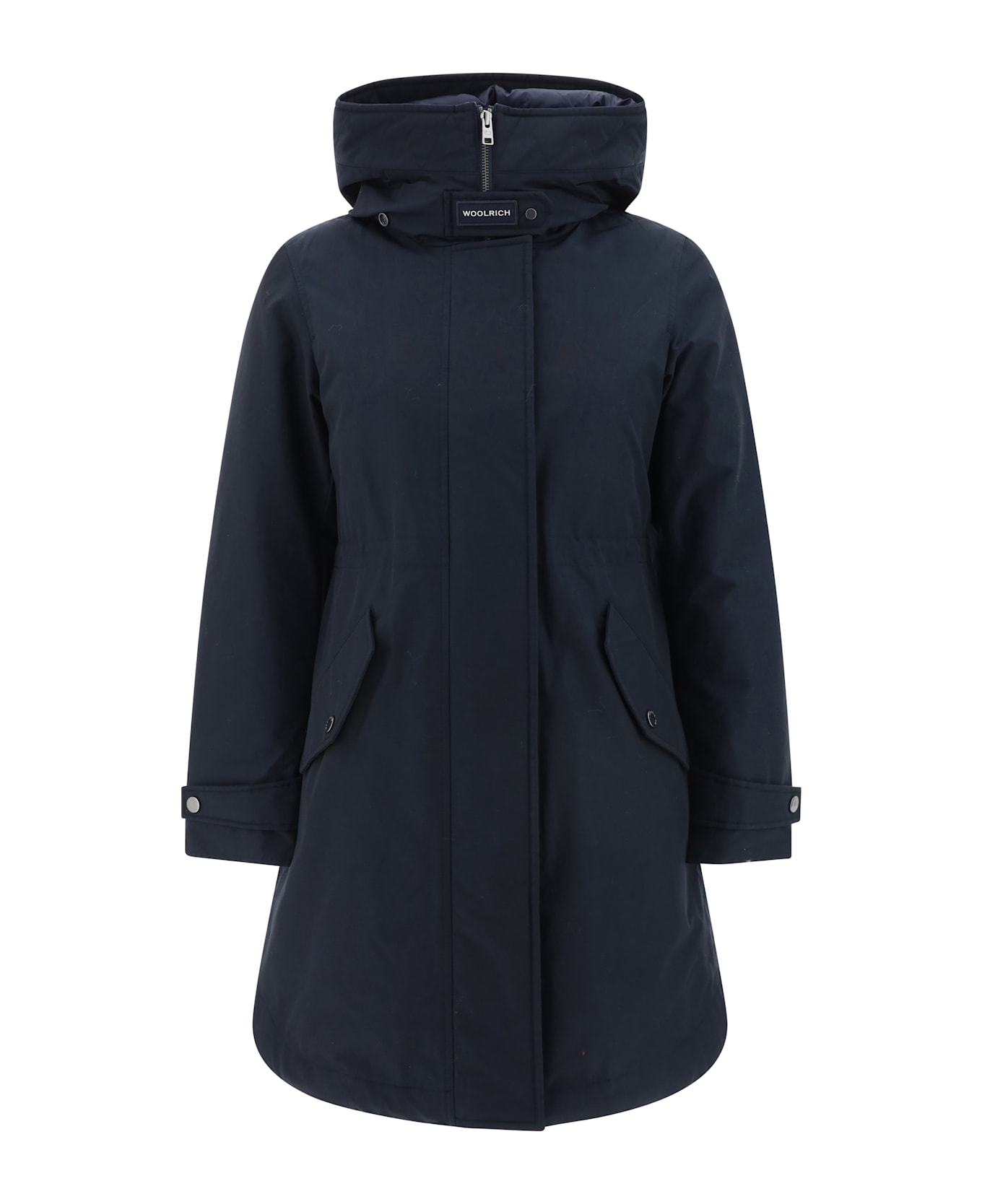 Cotton authentic 3-in-1 parka jacket by woolrich, double layer decomposable design. inside jacket with high collar and hood, closure by double-slider zipper, elastic cuffs, two zippered side welt pockets, all-over quilted and padded design. cotton outer jacket, high collar with hood, front closure by double-slider zipper and snap button flap, two side flap patch pockets, adjustable button cuffs, adjustable waistband with inside drawstring, monochrome pattern, regular fit.