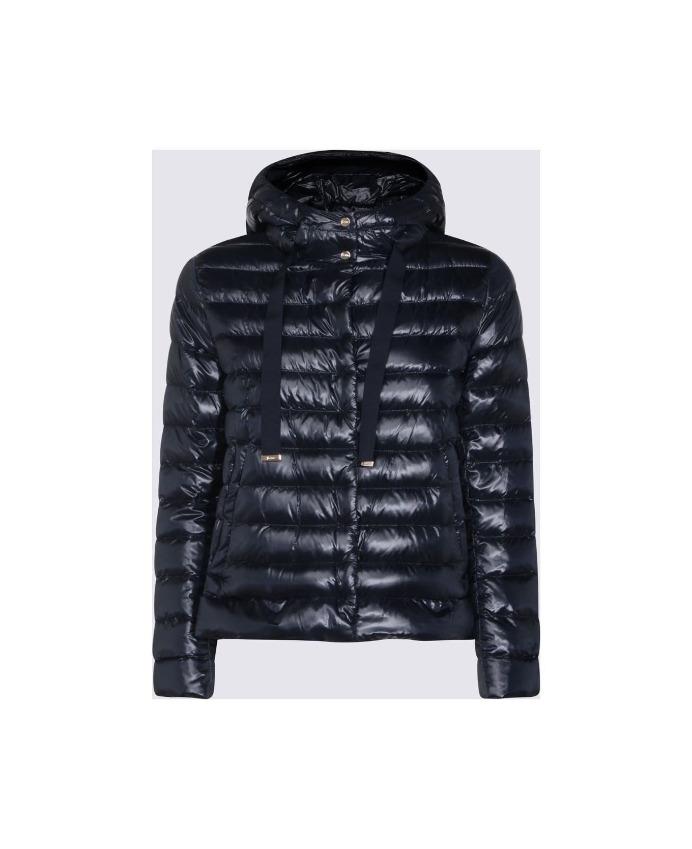 Navy puffer down jacket from Herno featuring hoodie, long sleeves, zip closure, side pockets and ribbed hems. Composition: _, 100% Polyamide
