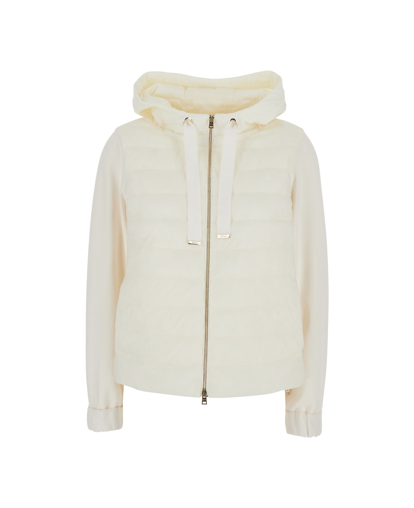 Down Jacket White Drawstring hood Zip closure Long sleeves Quilted design Straight hem Tech fabric and cotton Regular fit