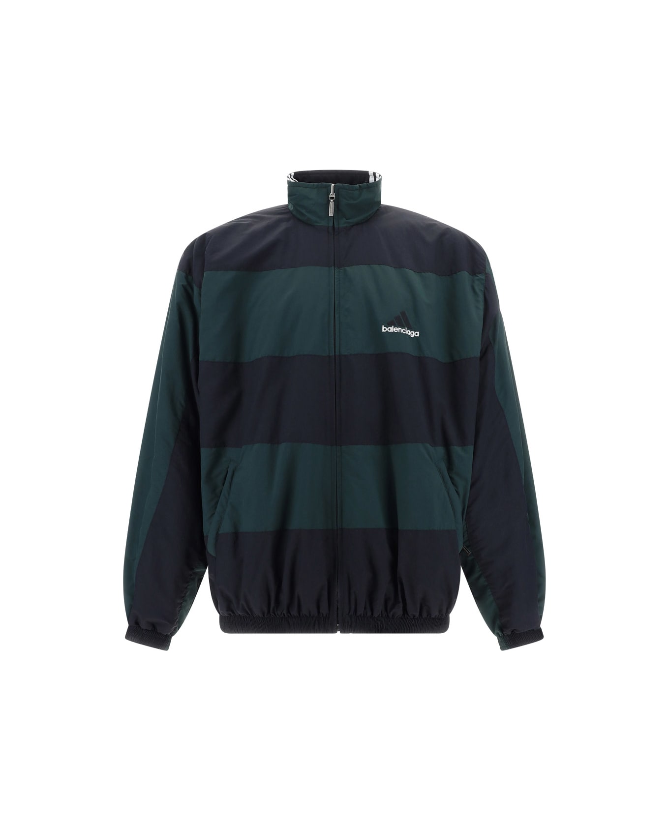 Jacket by balenciaga for adidas, front zip fastening with logoed zip, high neck design, contrasting iconic adidas logo and balenciaga monogram on the front and repeated on the back, two side welt pockets with zip fastening, two-tone paneled pattern, elasticated cuffs and hem, oversized fit,double-face pattern.