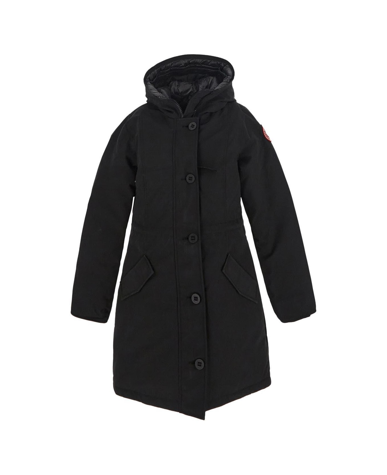Canada Goose parka jacket in black polyester blend featured by a down-fill hood with removable zipped trim, pulled neck, long sleeves, inner elasticated mesh waistband, recessed black cuffs, flap pockets, concealed zip and button closure, logo patch on the sleeve, expandable bottom thanks to a rear zip fastening, hanging lining with backpack straps, inner waistband drawstring and water repellent. It protects you up to -20°C.