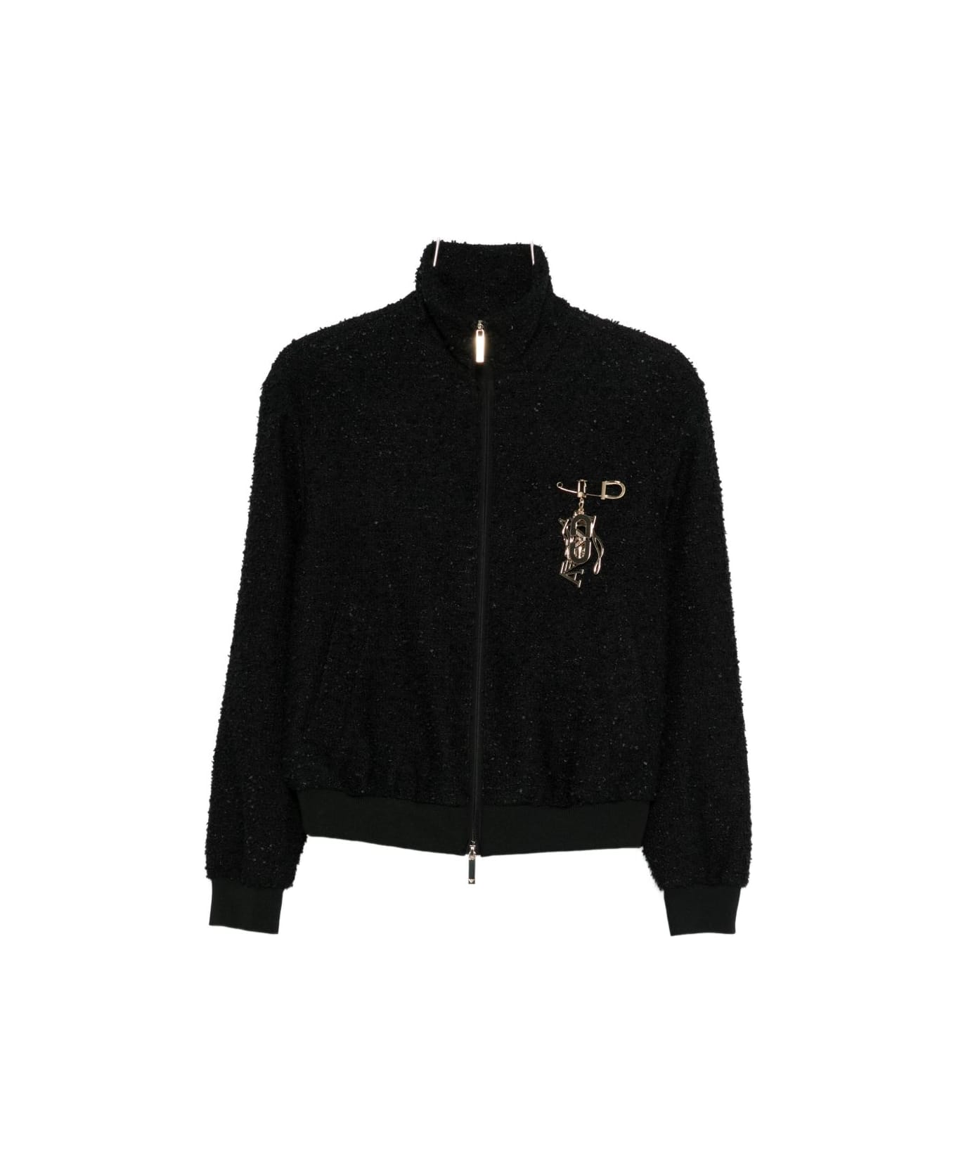 black textured finish appliqué detail ribbed hem ribbed cuffs zip fastening