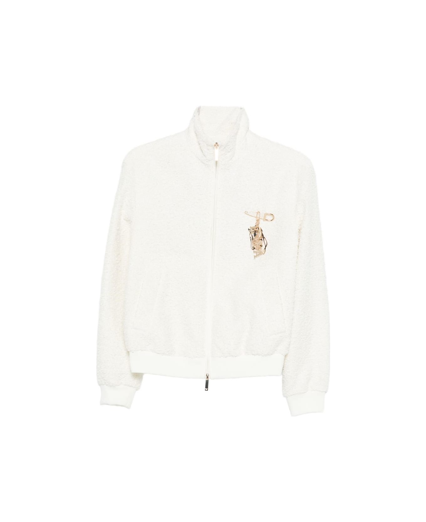 off white textured knit appliqué zip fastening ribbed hem ribbed cuffs Composition: 52% Polyester, 15% Acrylic, 33% Polyamide