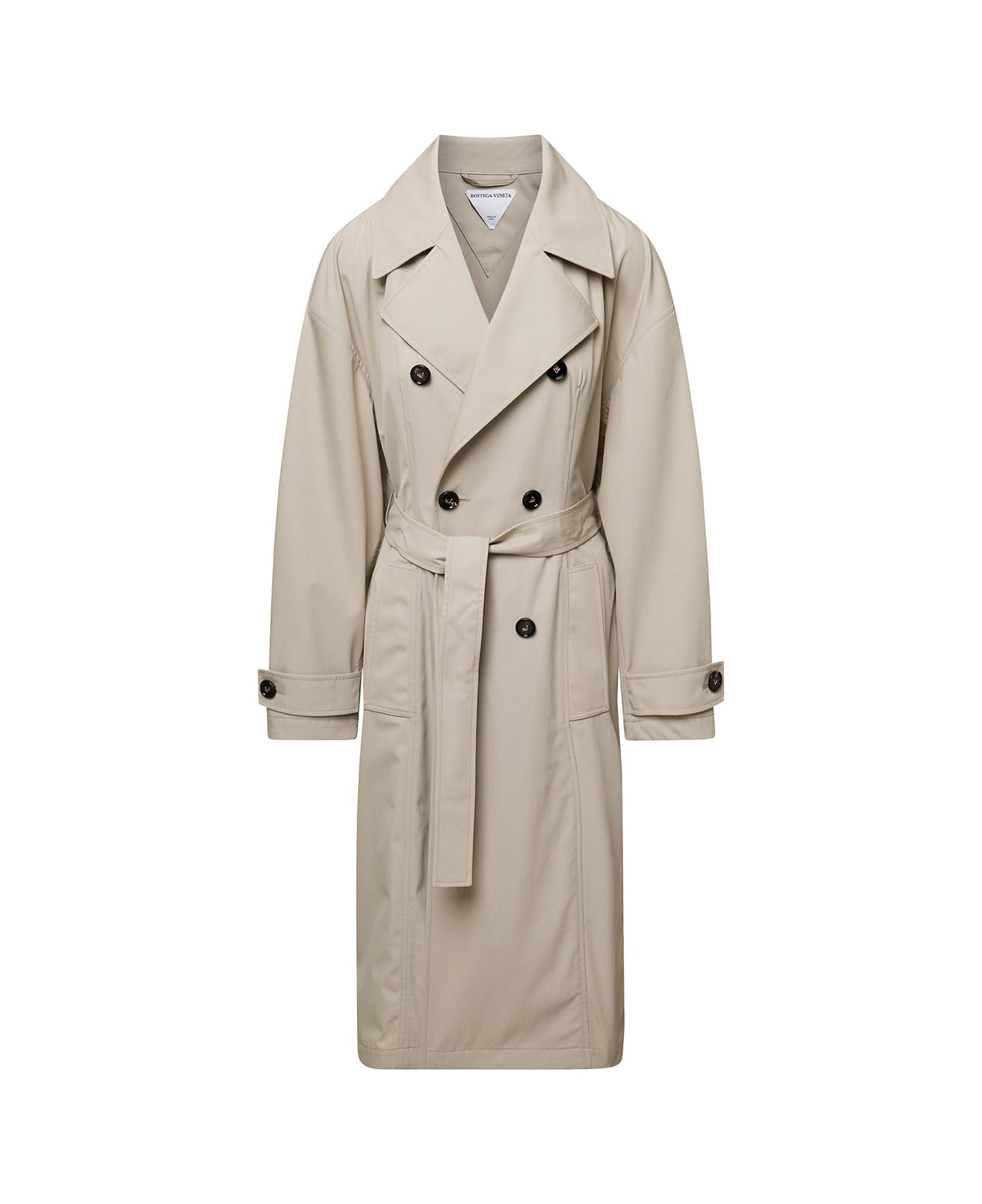 Beige Double-breasted Trench Coat With Balloon Effect At The Back In Cotton Blend Man