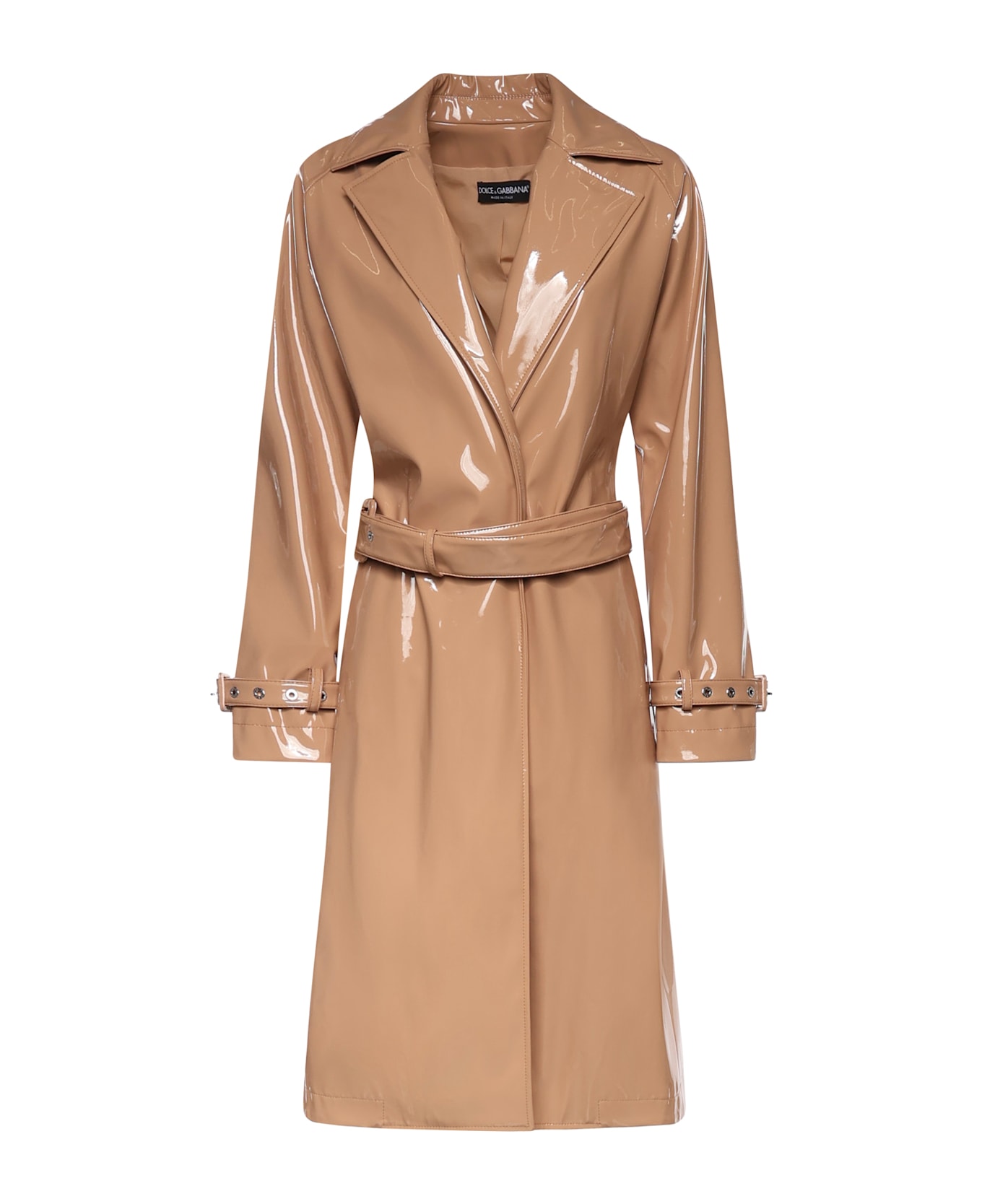 -Tone-on-tone belt closure -Long sleeves -Notched lapels -Made in Italy -Size shown is 40 -Designer color: Beige