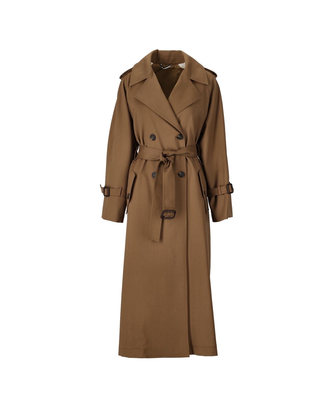 Barni trench coat by Max Mara Weekend made of brown wool blend gabardine, featuring a lapel collar, long sleeves with frogs, buttoned pockets on the front and double-breasted closure. Slit on the back, cotton lining and matching belt at the waist. Relaxed fit.