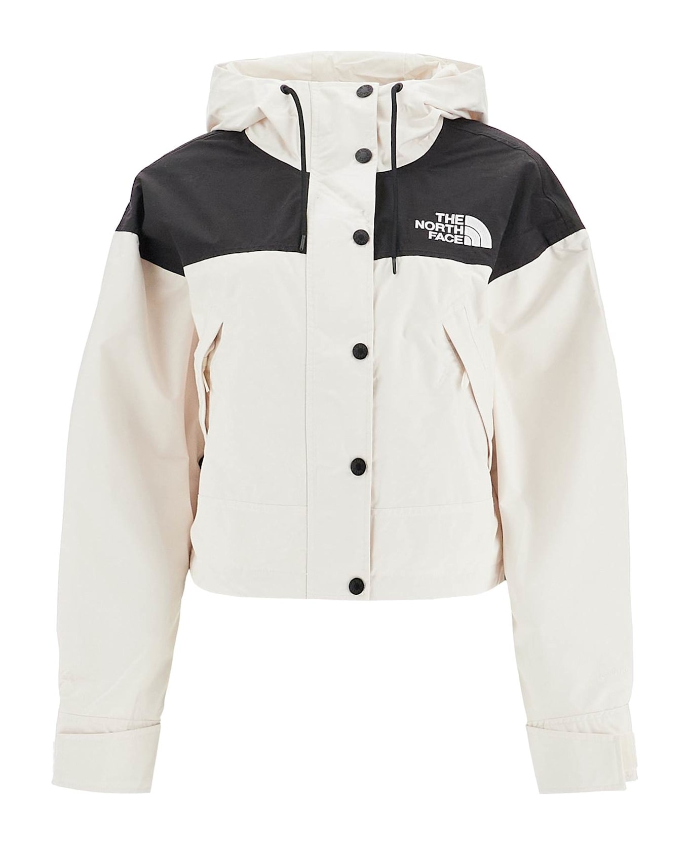 The North Face sport jacket made of technical DryVent fabric with windproof, waterproof and breathable properties, produced with recycled fibers. The jacket is characterized by a relaxed fit with a short and boxy cut, complete with an adjustable hood, hem and cuffs. Closed with zip and snap buttons, the garment is lined and equipped with two zip pockets. TNF logo embroidered on the chest and back. The model is 177 cm tall and wears size XS.