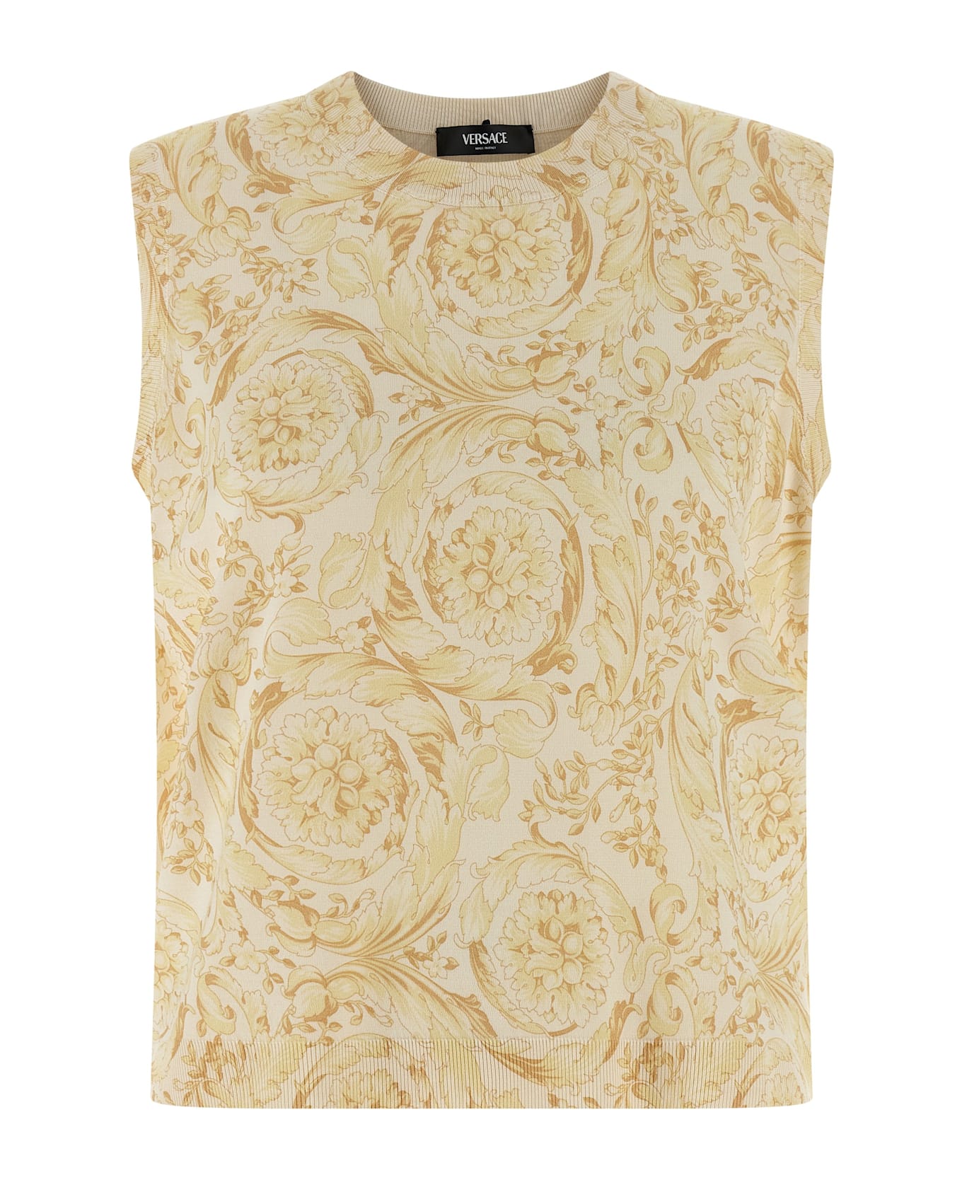 All-over 'Barocco' print silk vest with crewneck. Composition: 100% silk