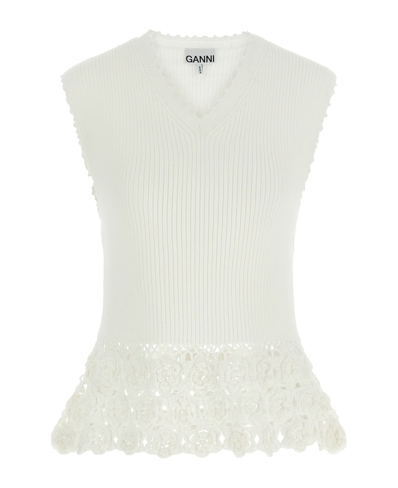 'Cotton Crochet' knitted ribbed stretch cotton vest with V-neck, tone-on-tone crochet cotton insert on the hem. SUSTAINABLE: This product is made of organic cotton. Composition: 90% organic cotton 10% polyamide