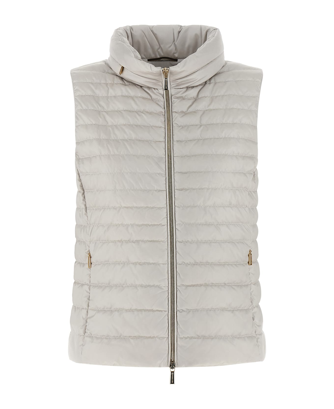 'Villan' vest in polished technical fabric quilted and goose feather padding, standing collar with removable hood, front zip closure, pockets. Composition: 100% polyester