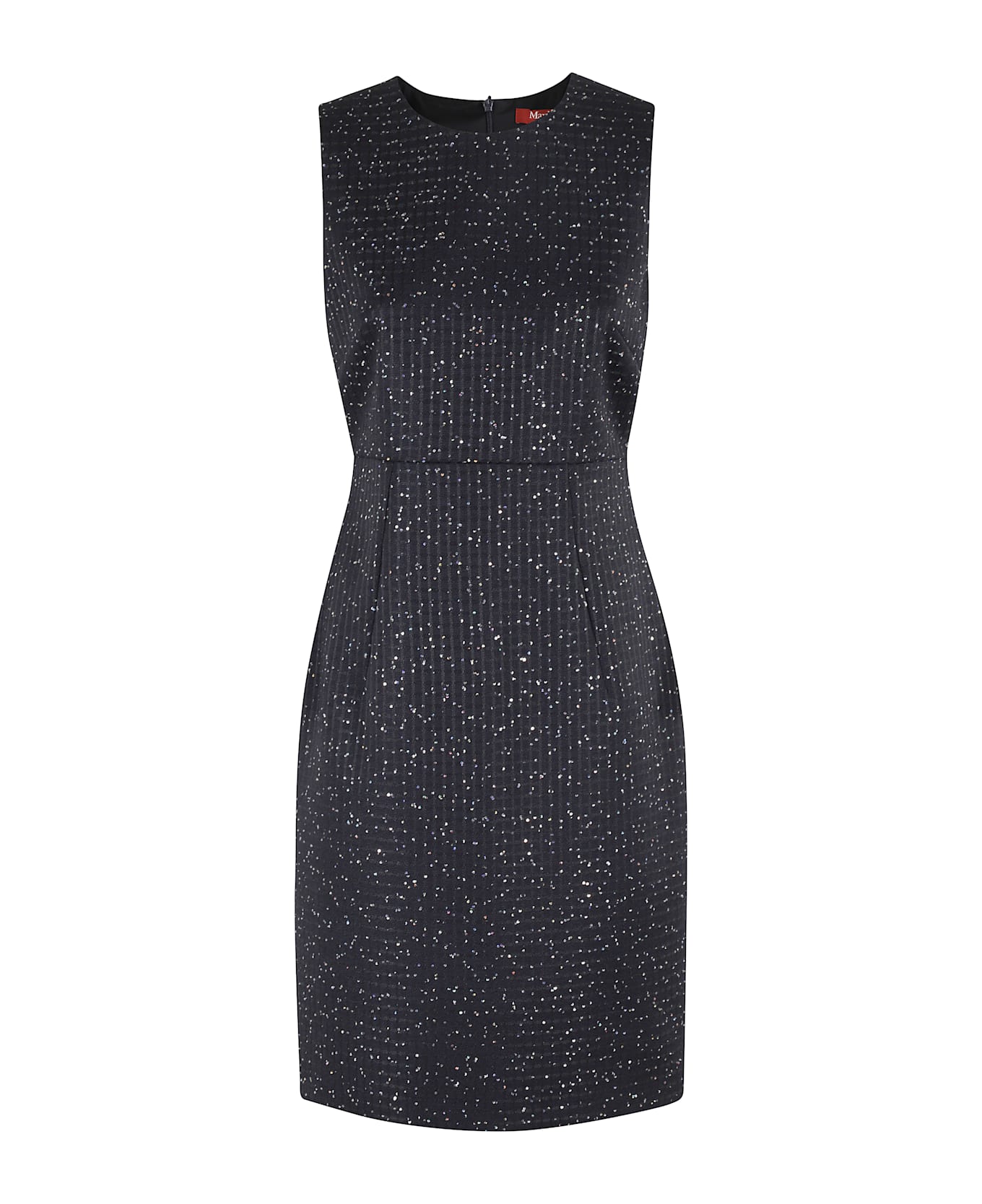 Abadan dress - Max Mara Studio Elegant - Blue color - Wool blend fabric with sequins - Crew neck - Sleeveless - Back zipper closure - Midi sheath model