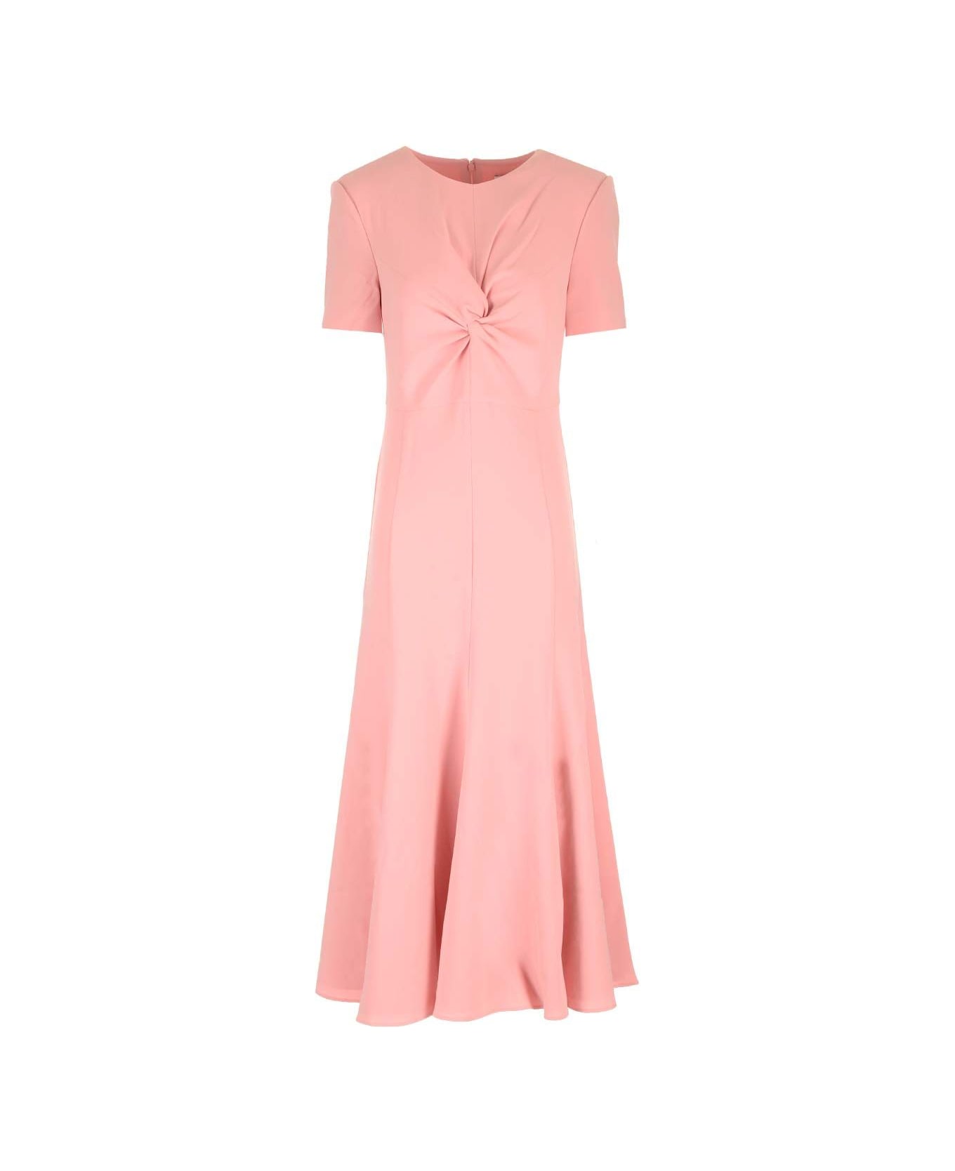Pink cady midi dress from Roland Mouret, with flared skirt, short sleeves, central knot, invisible zip on the back.
