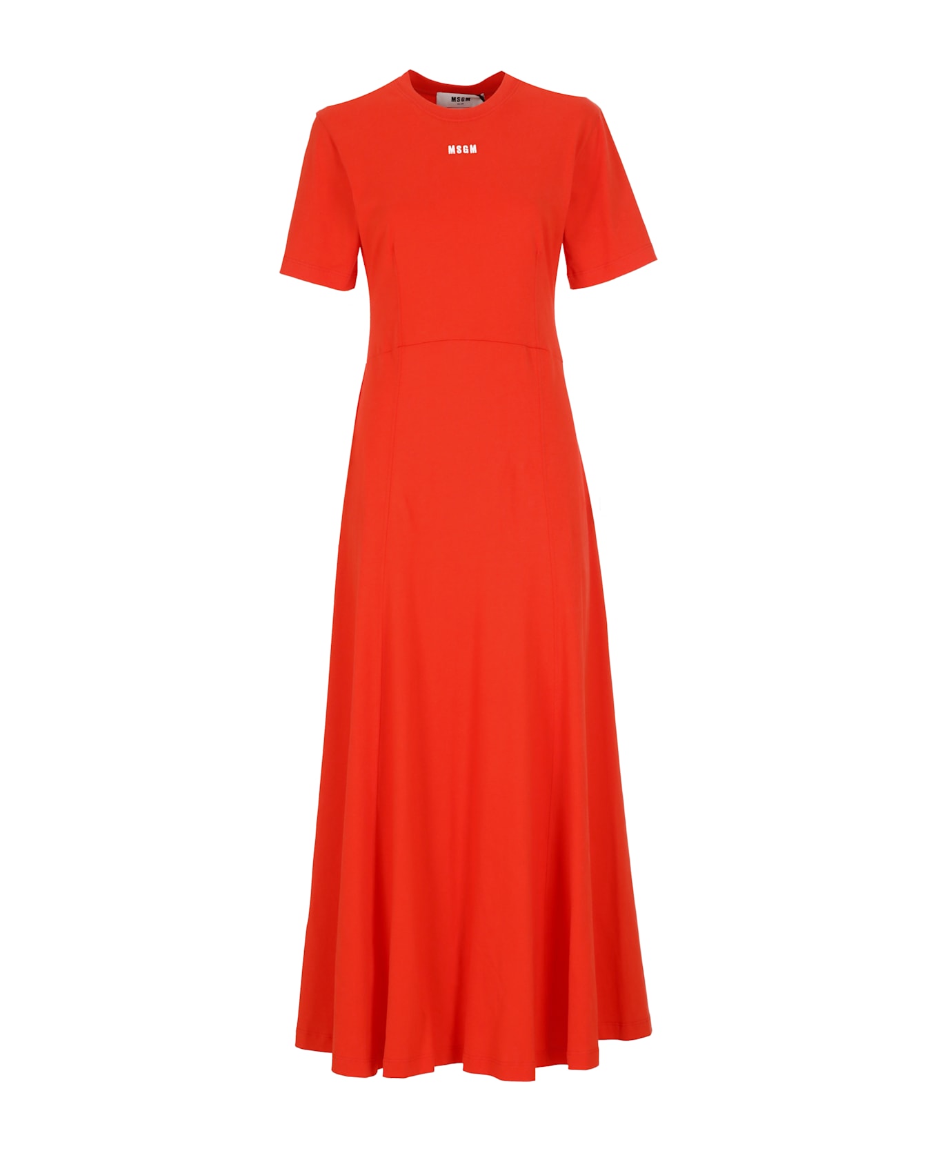 - Orange MSGM cotton dress for woman - Round neck - Short sleeves - Front contrasting color logo