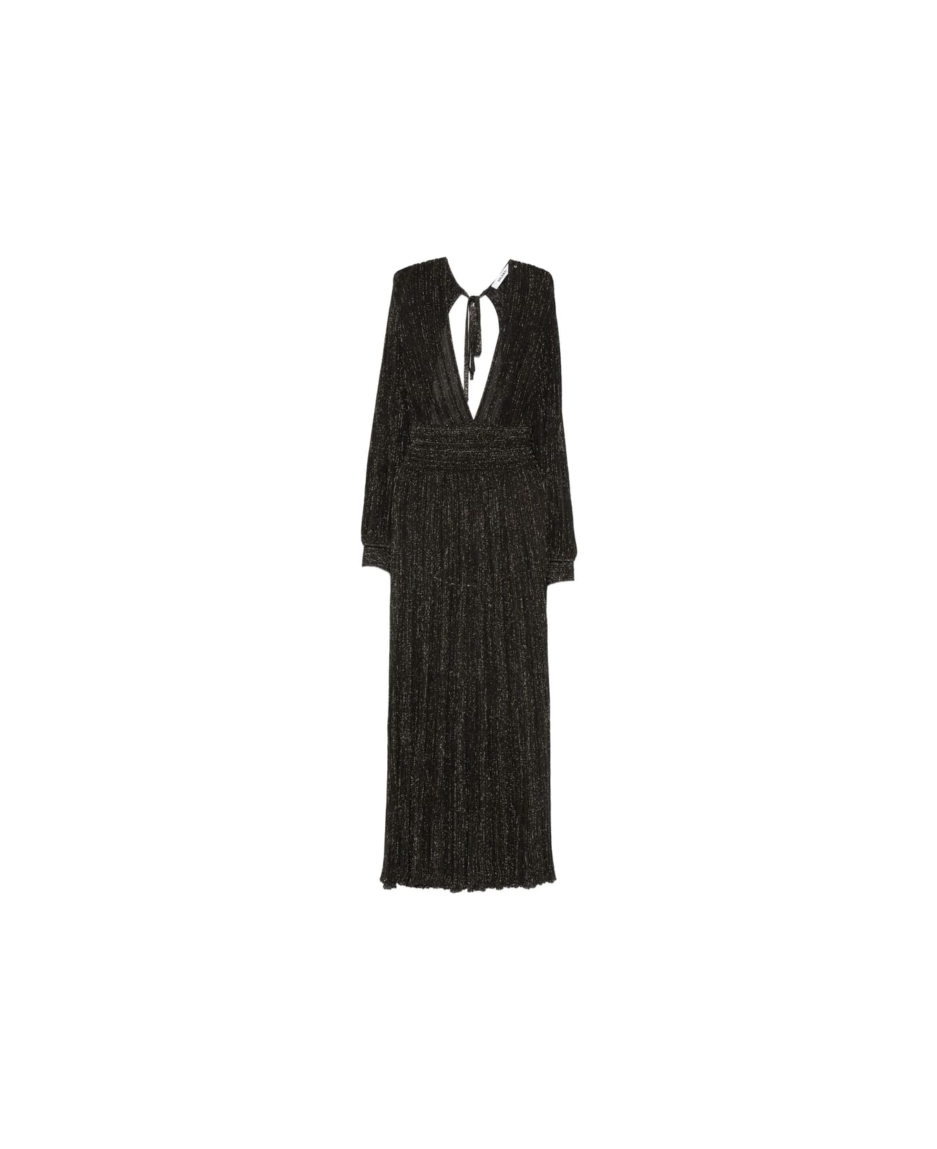 espresso black and gold shimmery finishing pleated texture V-neck long sleeves tie fastening maxi length