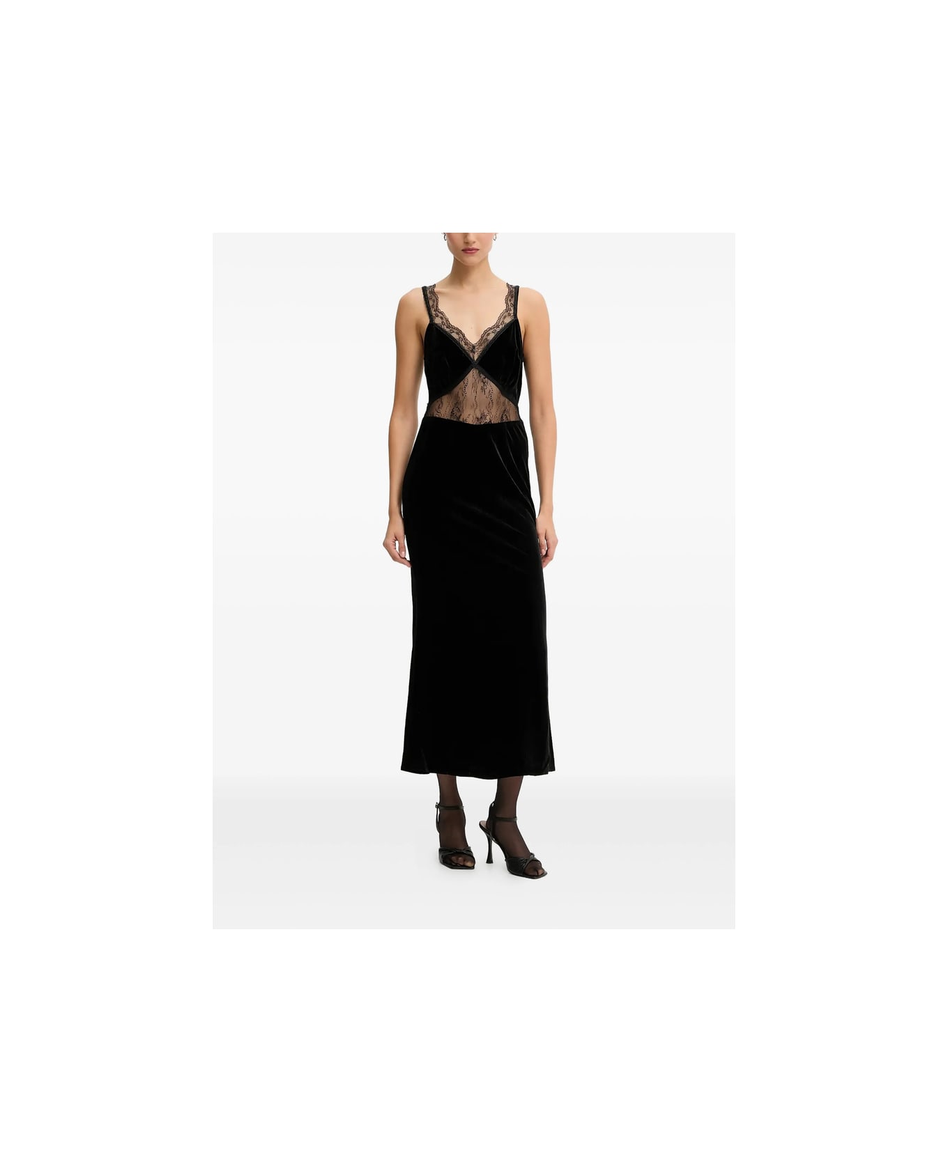 black lace panel sleeveless V-neck