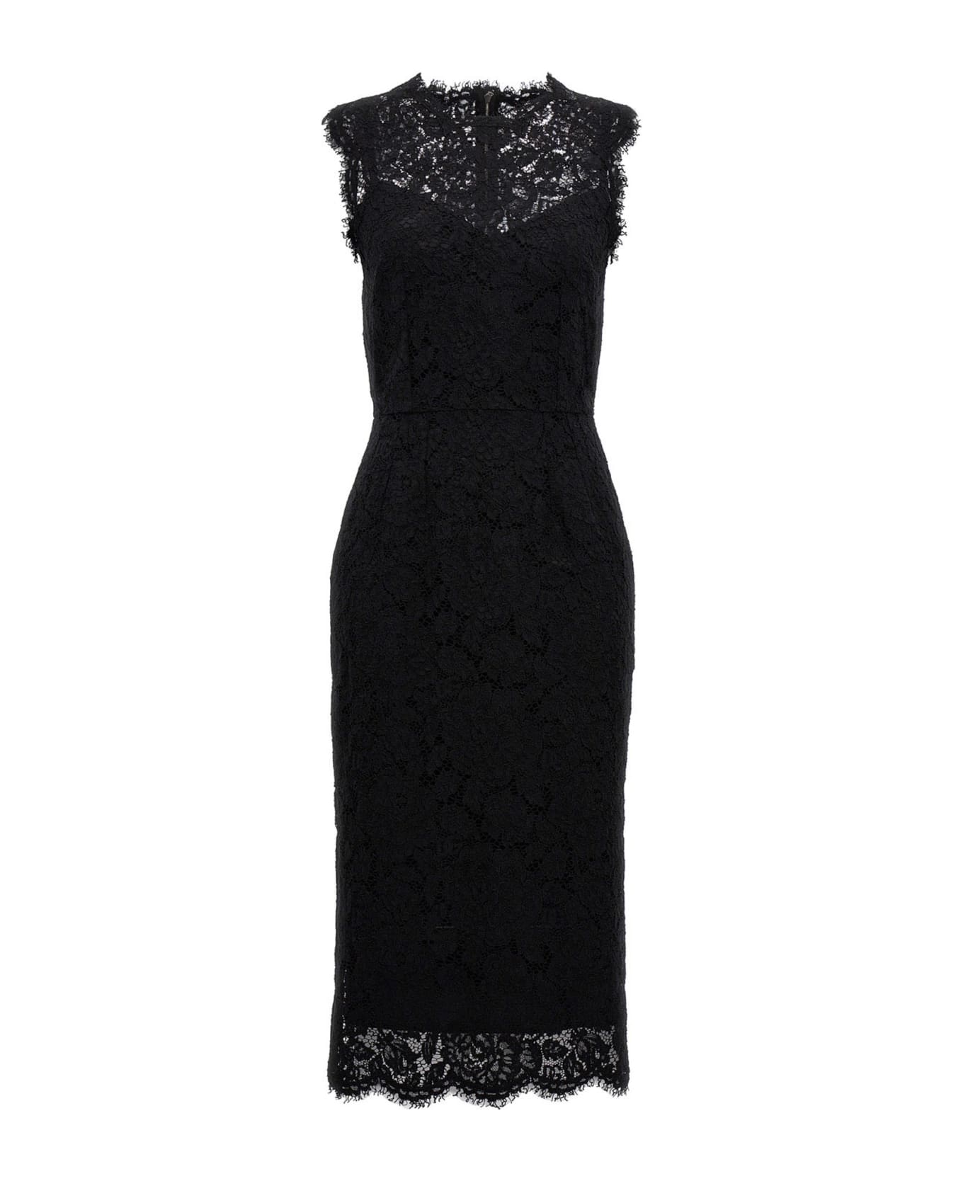 Lace dress with removable tone-on-tone petticoat, crewneck, a back zip closure. Composition: 51% viscose 24% cotton 20% polyamide 5% elastane