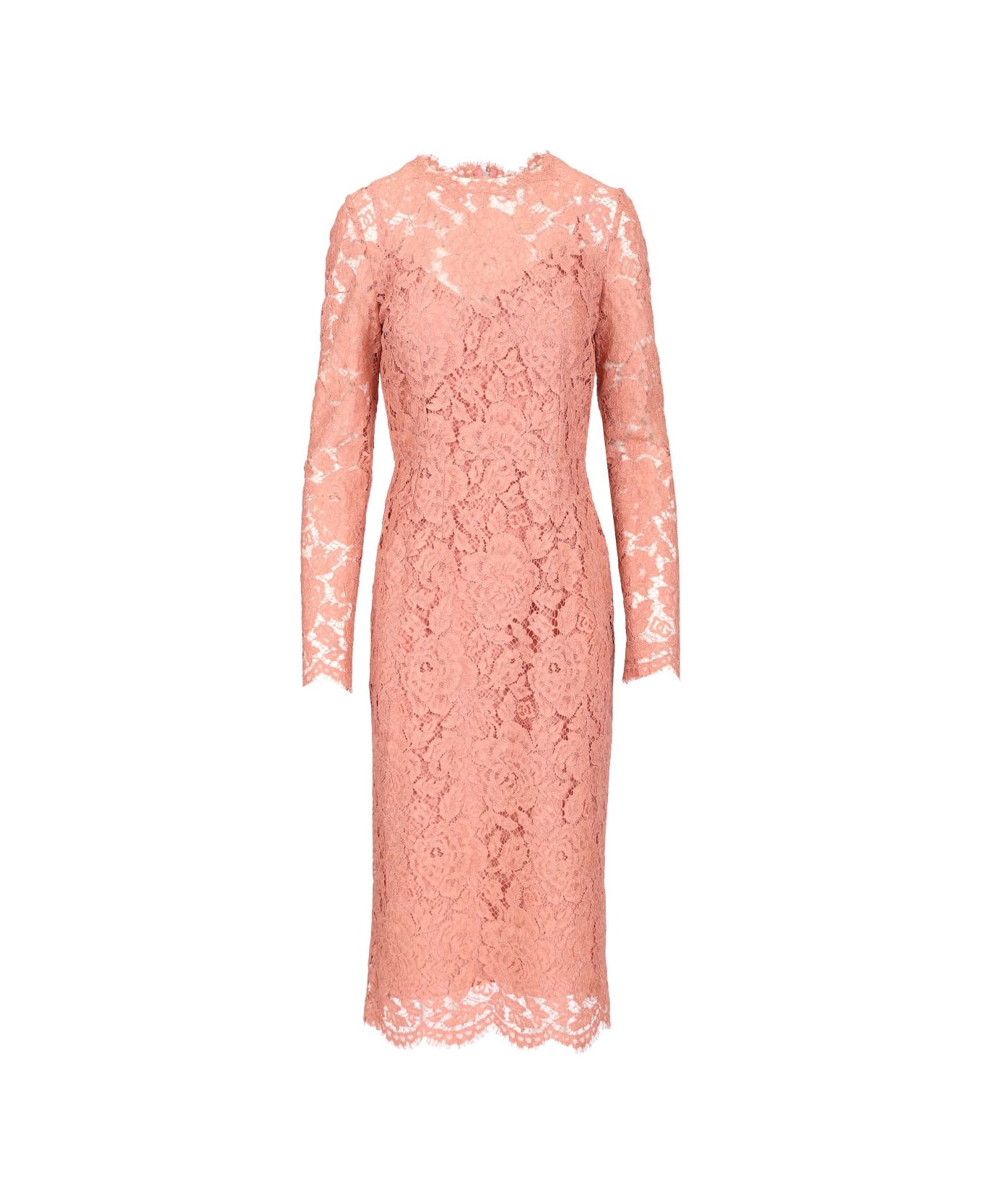 Dolce & Gabbana lace pencil dress with long sleeves and a round neckline, featuring a silk crepe de chine slip and a zip and hook fastening at the back. Composition: 35%Cotone+24%Poliammidica+41%Viscosa