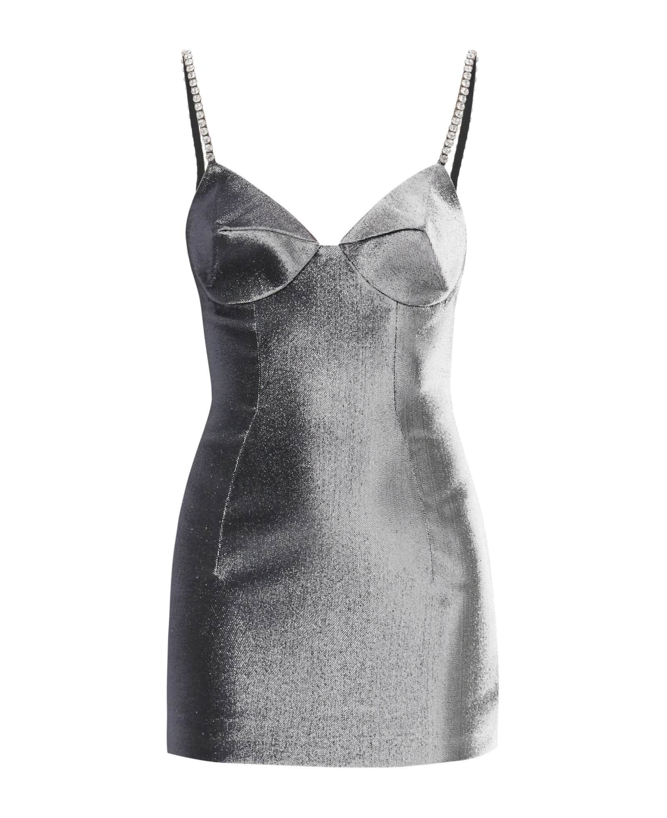 Laminated mini dress by AREA in stretch fabric with pyramid cup, adjustable shoulder straps embellished with crystals and rear concealed zippered closure. Tight fit. The model is 177 cm tall and wears size 4.