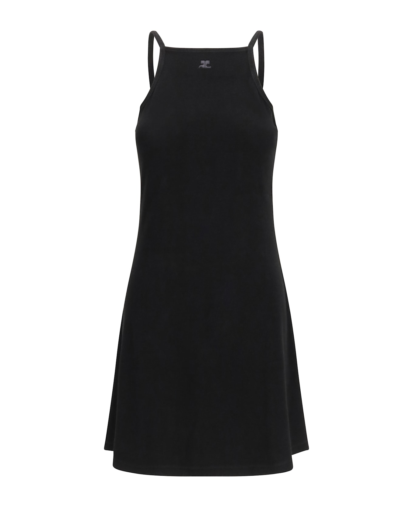 The logo mini dress by courrèges combines minimalism with distinctive style. featuring a square neckline and sleeveless design, it is embellished with logo detailing for an iconic, contemporary touch. perfect for elegant, modern looks.