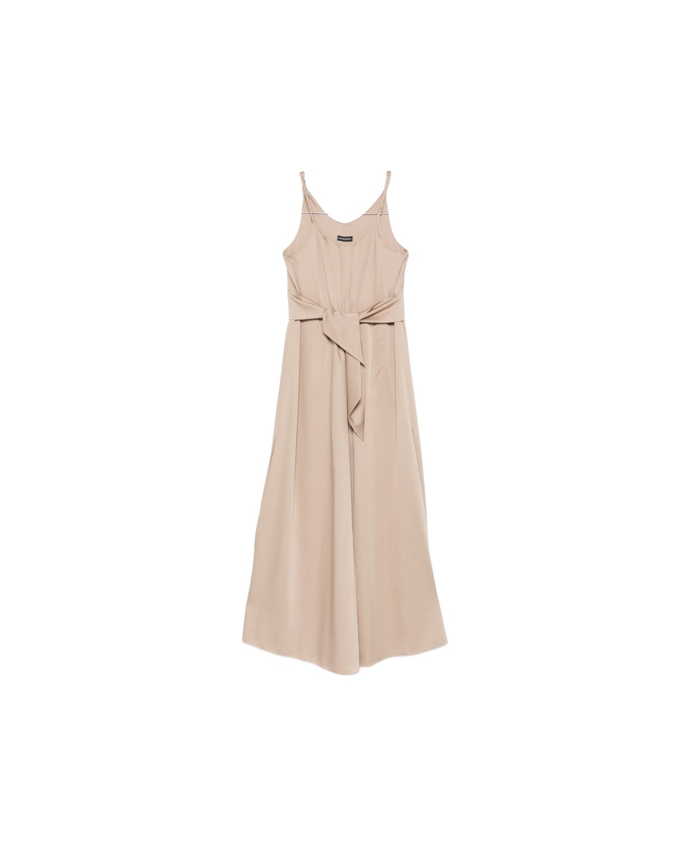 beige tie waist sleeveless pleat detail Composition: 100% Polyester