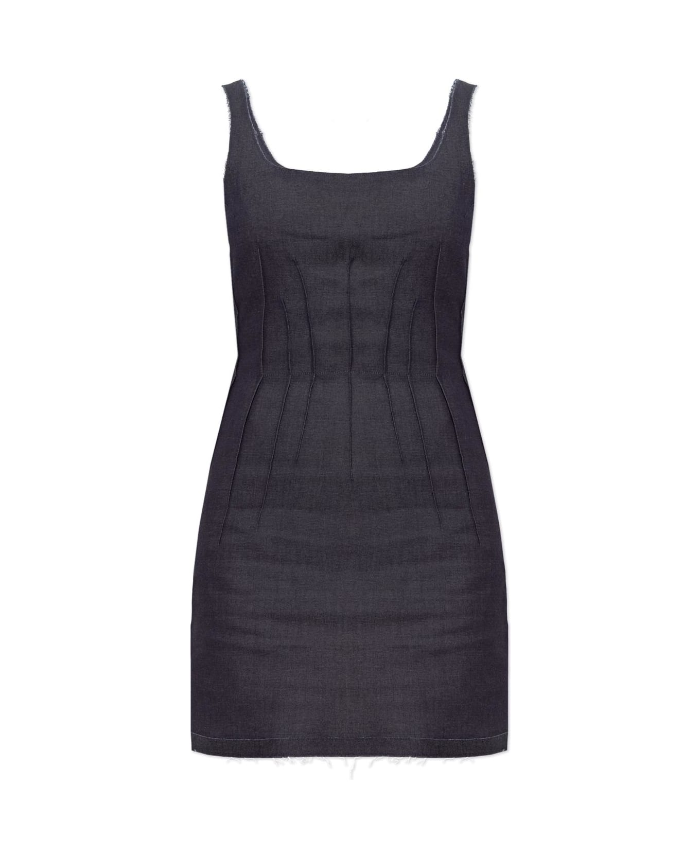 Emanating contemporary elegance, this navy denim mini dress by Marni impeccably blends Italian sophistication with organic simplicity. Crafted from premium, heavier-weight denim with a distinctly refined matte texture, its fitted sheath silhouette embraces the figure while maintaining an air of effortless chic. The architectural square neckline gracefully accents both front and back, balanced by wide shoulder straps and an artfully minimalist sleeveless design. Sculptural, vertical topstitching sculpts the waist and streamlines the profile, while the unhemmed, raw-edge finish lends a strikingly modern, casual twist. In a deep, uninterrupted shade of navy, free from overt branding, this piece embodies understated luxury and the meticulous craftsmanship for which Marni is renowned. Why choose this product? Distinguished design from acclaimed Italian fashion house Marni Superior denim with an authentically luxurious look and feel Flattering, tailored silhouette with distinctive vertical seams Minimalist sophistication no distracting logos or prints Raw, unfinished hem for a contemporary, fashion-forward touch