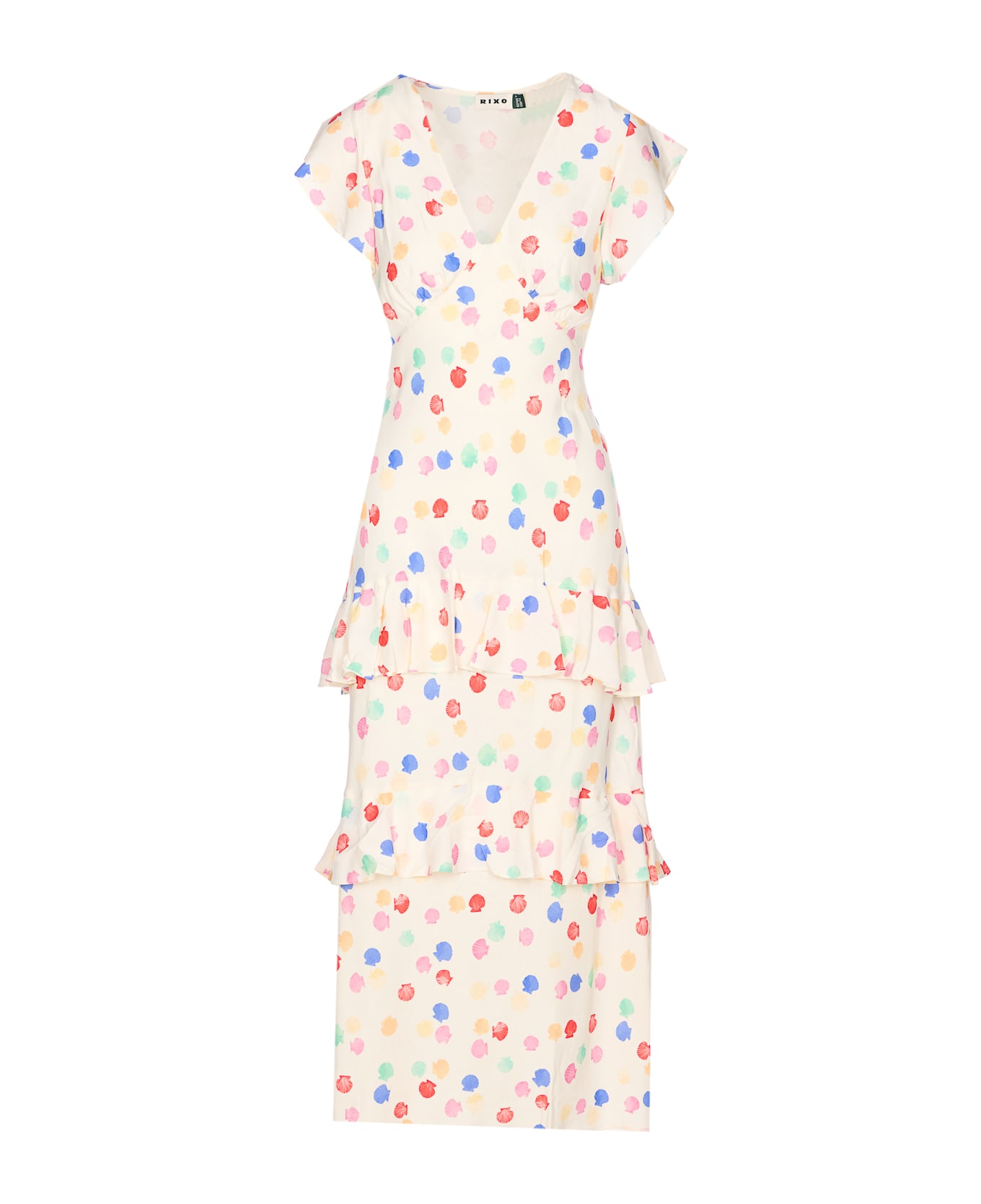 Rixo scatter shel Meena dress, V-neck, sleeveless, rouches details, all over printing shells, rouches details, laces closure, long model Composition: 100% Viscose