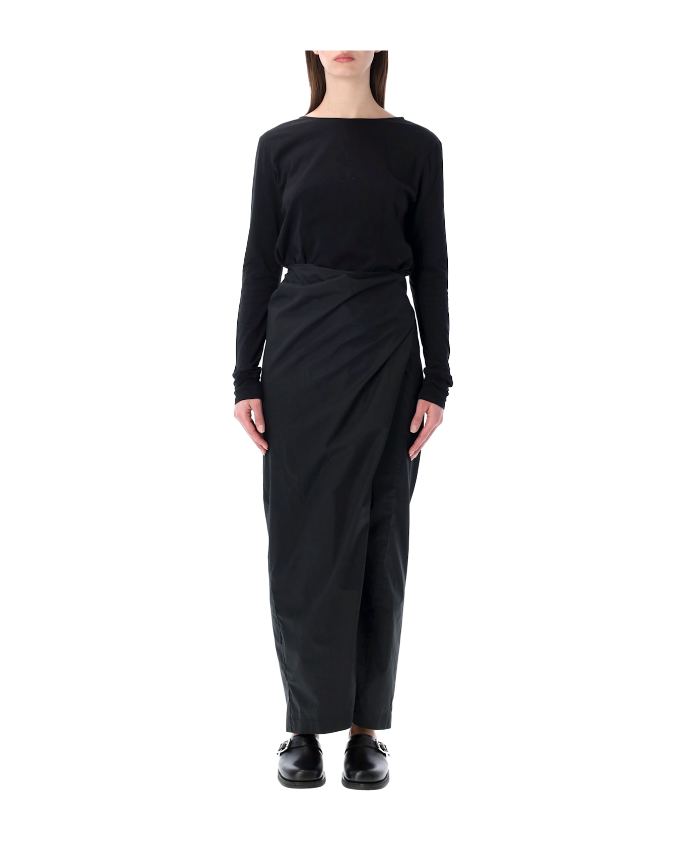 The Our Legacy Twisted Dress Is Crafted From Smooth Void Black Clean Jersey. Featuring The Brand s Signature Wrap Construction, The Skirt Panel Ties At The Back To Create A Cinched Waist. With A Boat Neckline, Elongated Sleeves, Corset-inspired Front Darts, And A Back Vent, It Offers An Elongated Silhouette And Regular Fit Through The Top. Wrap Construction With Back Tie Boat Neckline Elongated Sleeves Front Corset-like Darts For Shaping Back Vent Elongated Silhouette With Regular Top Fit Cinched Waist When Wrapped Alessandra Is 1,75 M And Wears Size 38