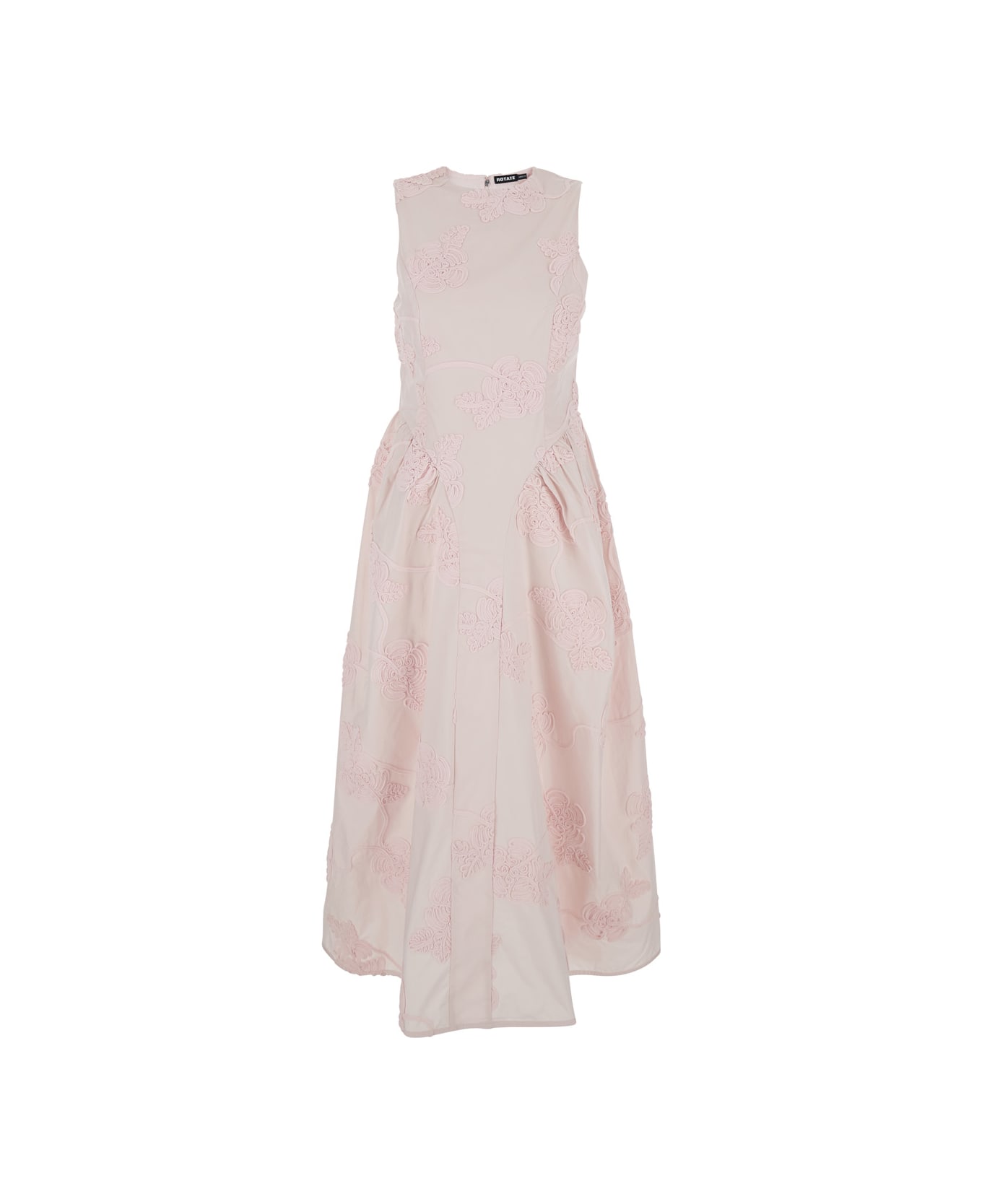 Pink Sleeveless Long Dress With Round Neckline And All-over Floral Embroidery In Tech Fabric Stretch Woman