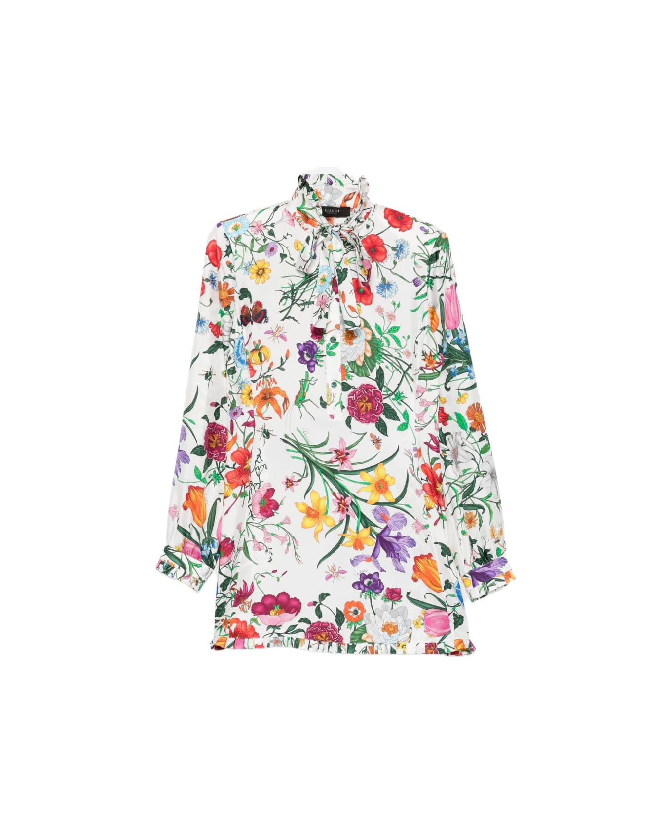 white floral print pussy-bow collar long sleeves button fastening ruffled hem Composition: 100% Silk