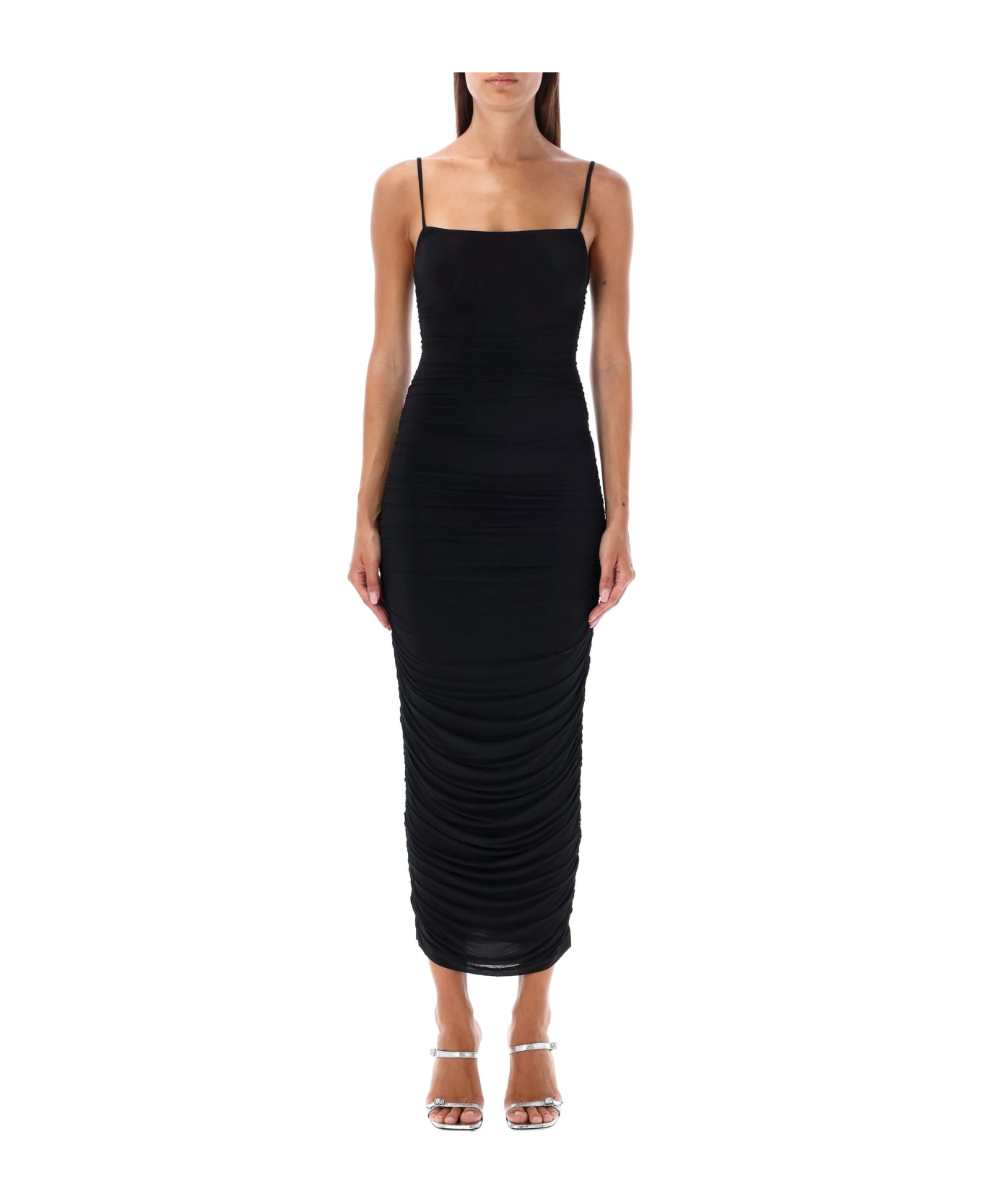 Ruched Slip Dress By Wardrobe Nyc. Featuring: Thin Straps Ruched Viscose Dress Model Is 1,72 M Tall And He Is Wearing Size S