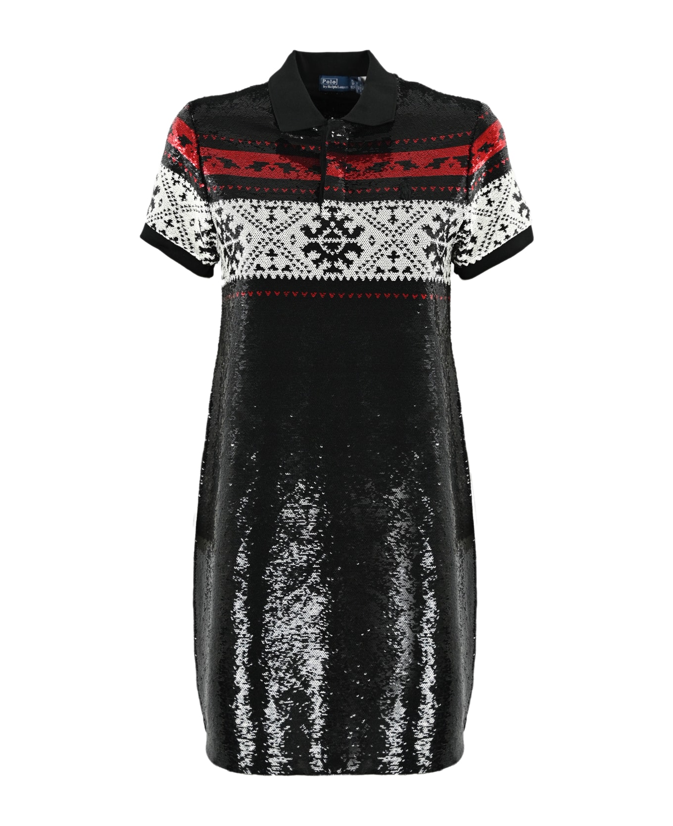 women's polo minidress: short dress short sleeves classic collar geometric pattern on the top all-over sequins lined regular fit composition: 95% nylon, 5% elastane 100% cotton