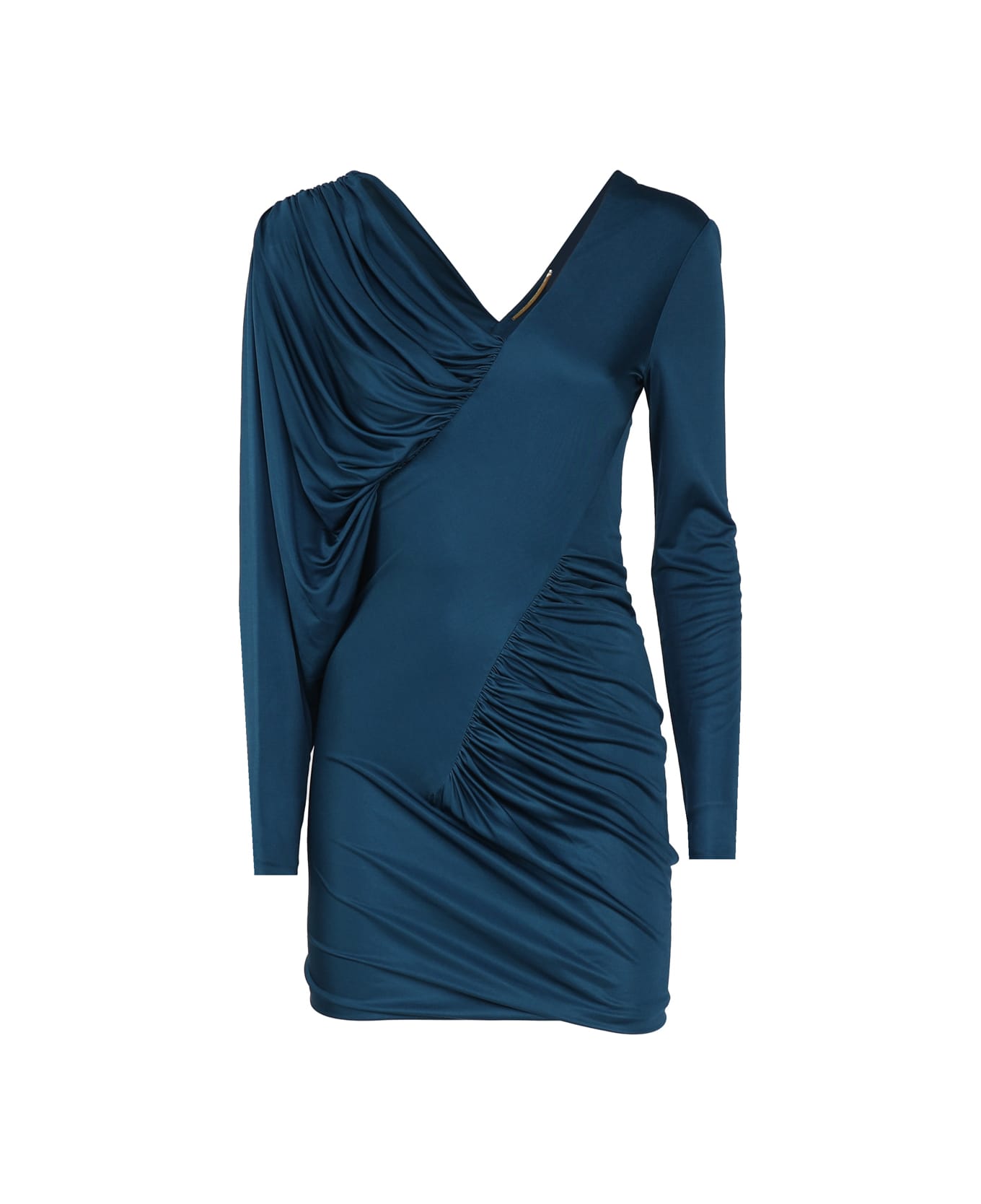 Bleu canard Shiny Jersey Draped Dress from Saint Laurent