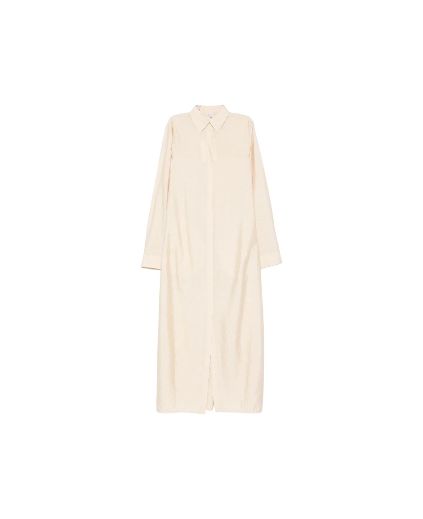 beige collared front split long sleeves concealed front button fastening