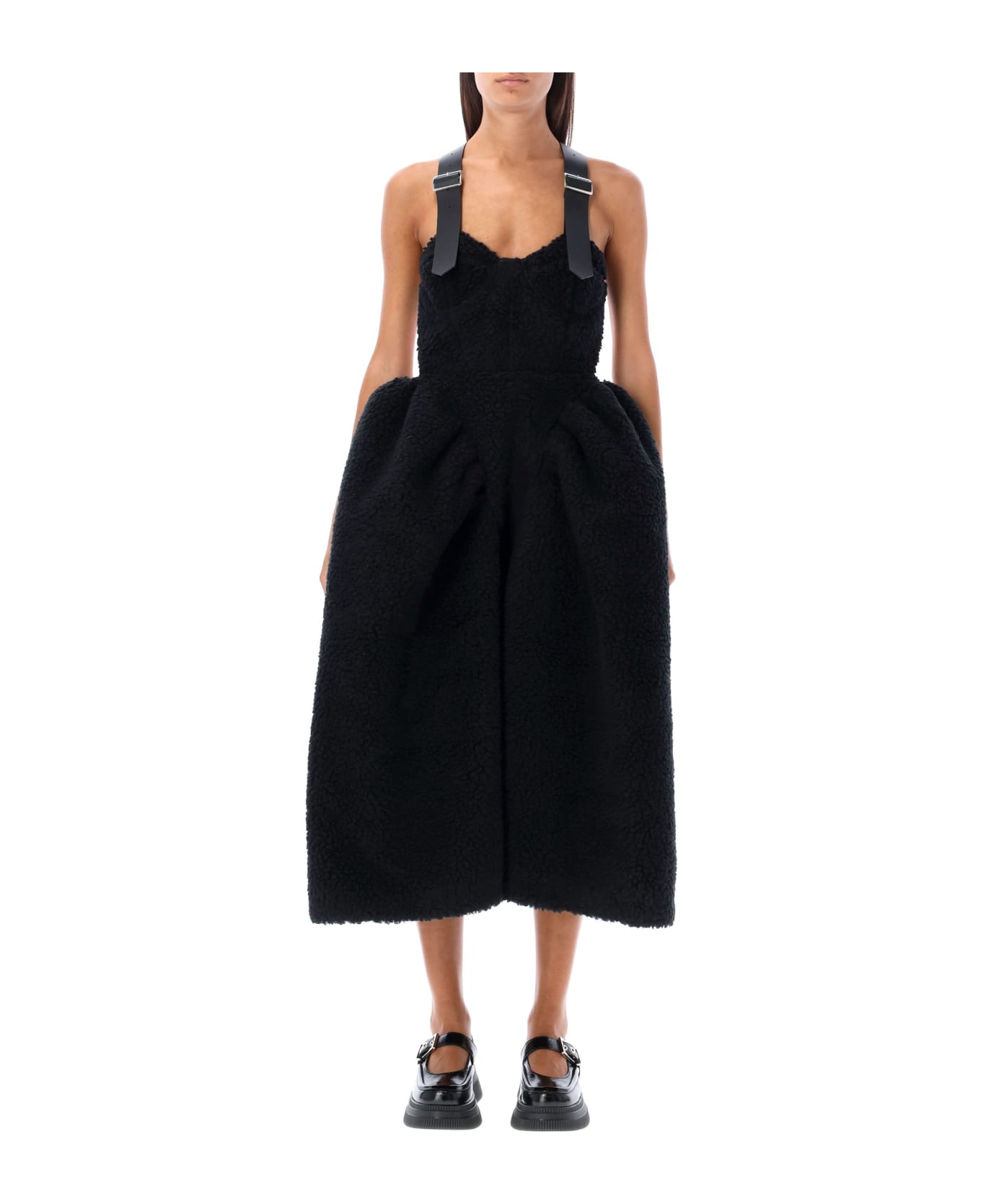 Teddy Bustier Dress By Noir Kei Ninomiya. Featuring: Adjustable Straps With Buckle Crossed At Back Bustier Top Open Back Mid Length The Model Is 1,72 M Tall And She's Wearing Size S