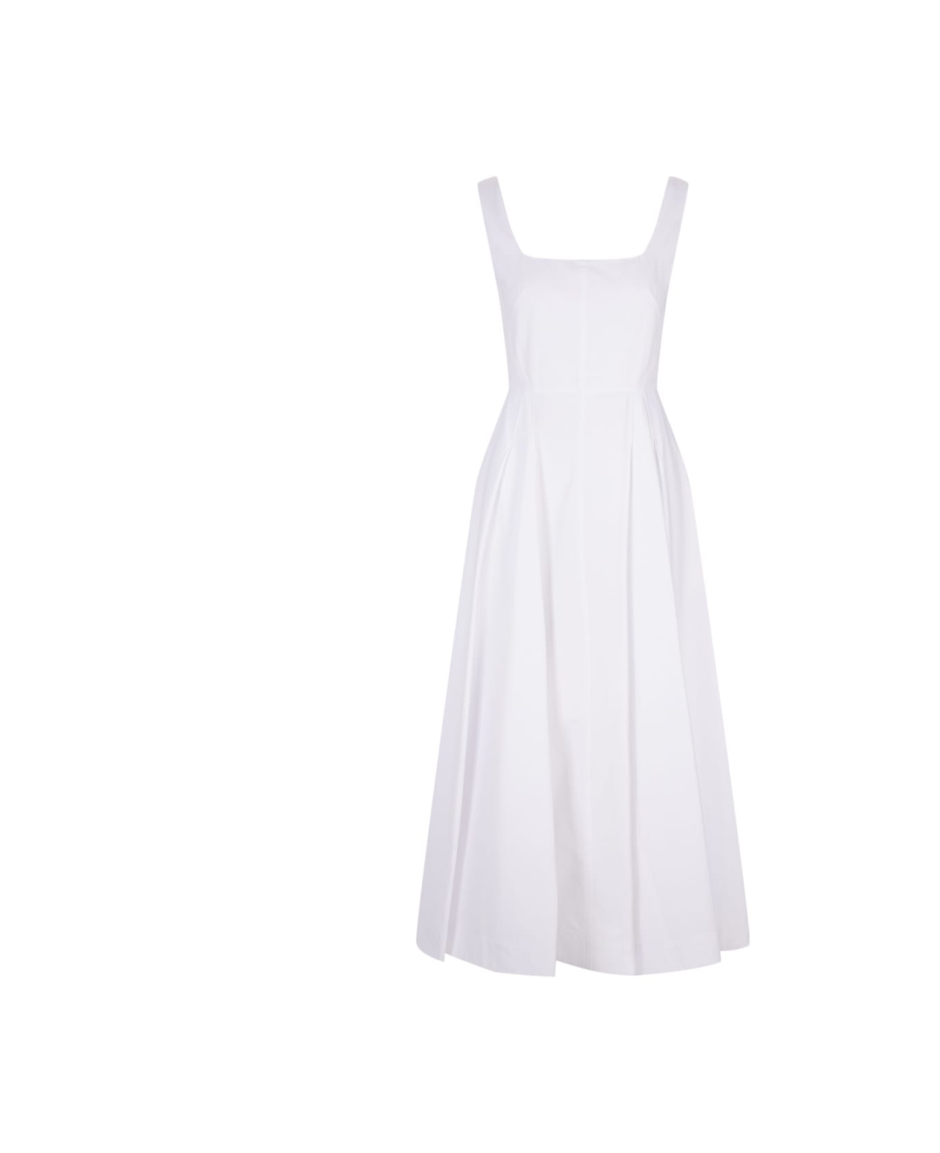 White Fantino Dress By Sportmax Made Of Heavy Pure Washed Cotton Canvas, With Princess Construction: The Bustier Is Fitted, With Square Neckline And Wide Shoulder Straps. The Diagonal Cuts On The Hips Make The Silhouette Even More Feminine. The Skirt Is Wide With Folds That Widen The Volume And Pockets Inserted Along The Sides. Back Closure With Visible Metal Zip. composition: 100% Cotton