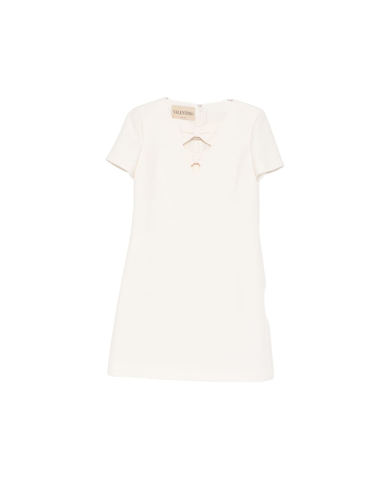 cream white cut-out detail ribbon detail short sleeves round neck concealed fastening Composition: Silk, 35% Virgin Wool, 65%