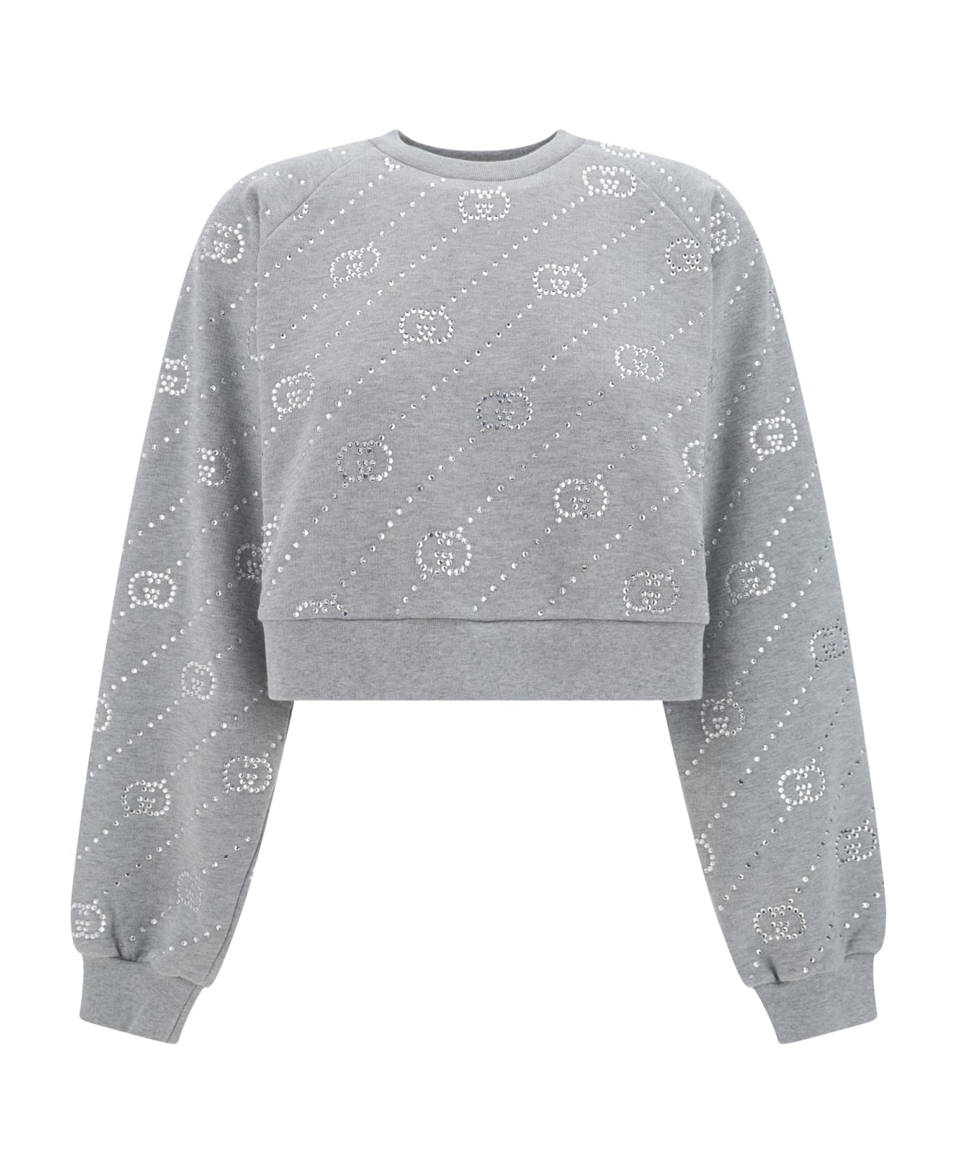 Cotton crop sweatshirt from gucci, ribbed crew neck, ribbed cuffs, ribbed hem, monochrome design, iconic gg supreme logo made with shiny rhinestones, regular fit. Composition: 100% % Cotton Composition: 100% Cotton