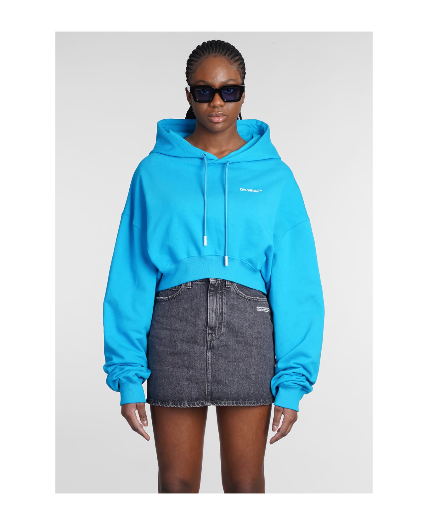 Sweatshirt in blue cotton, 100% cotton, adjustable hood with laces, Model is 180 cm and wear a size S, logo on chest, Made in Italy, long sleeves, ribbed cuffs and bottom, crop cut