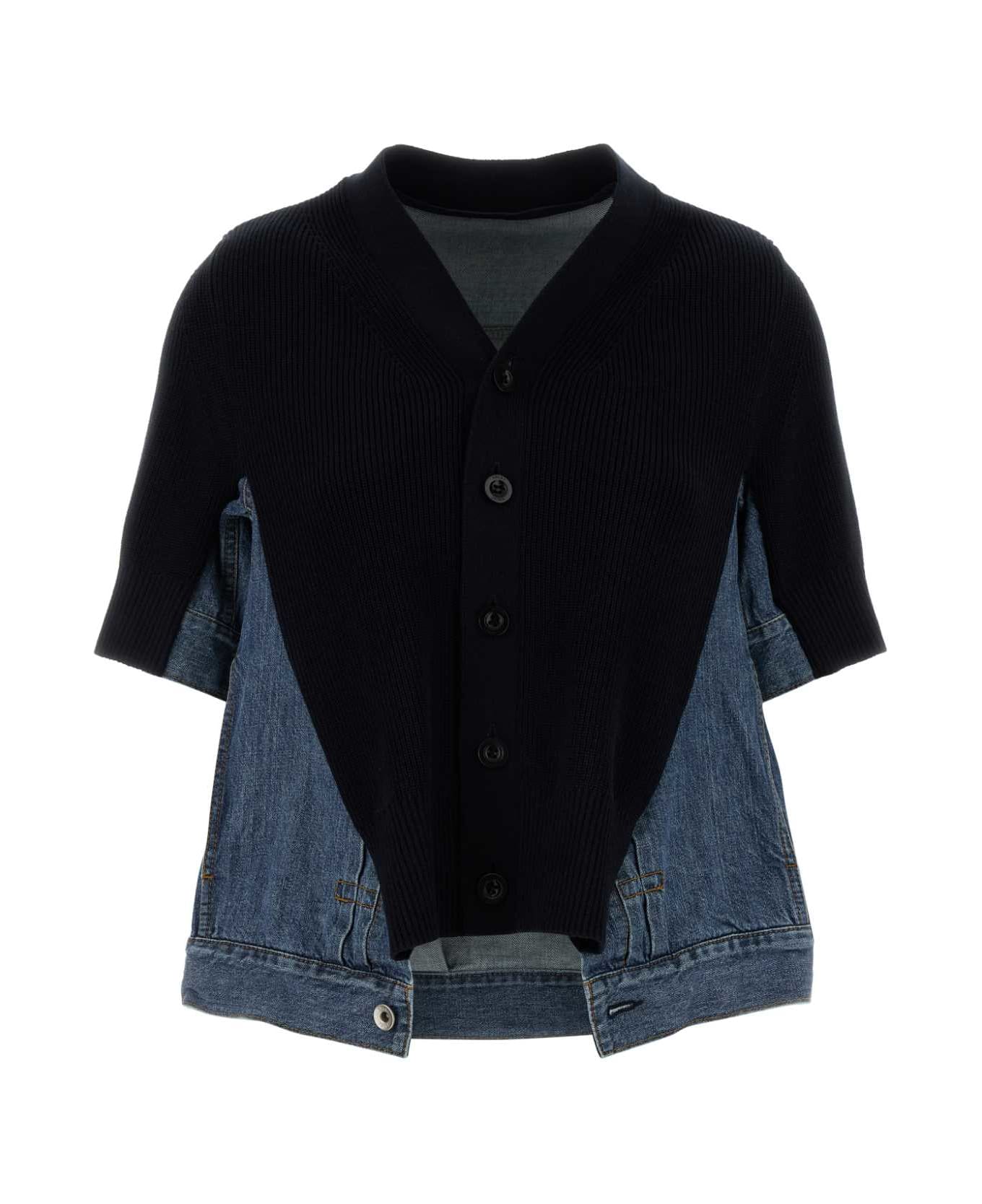 Two-tone Denim And Knit Cardigan from Sacai