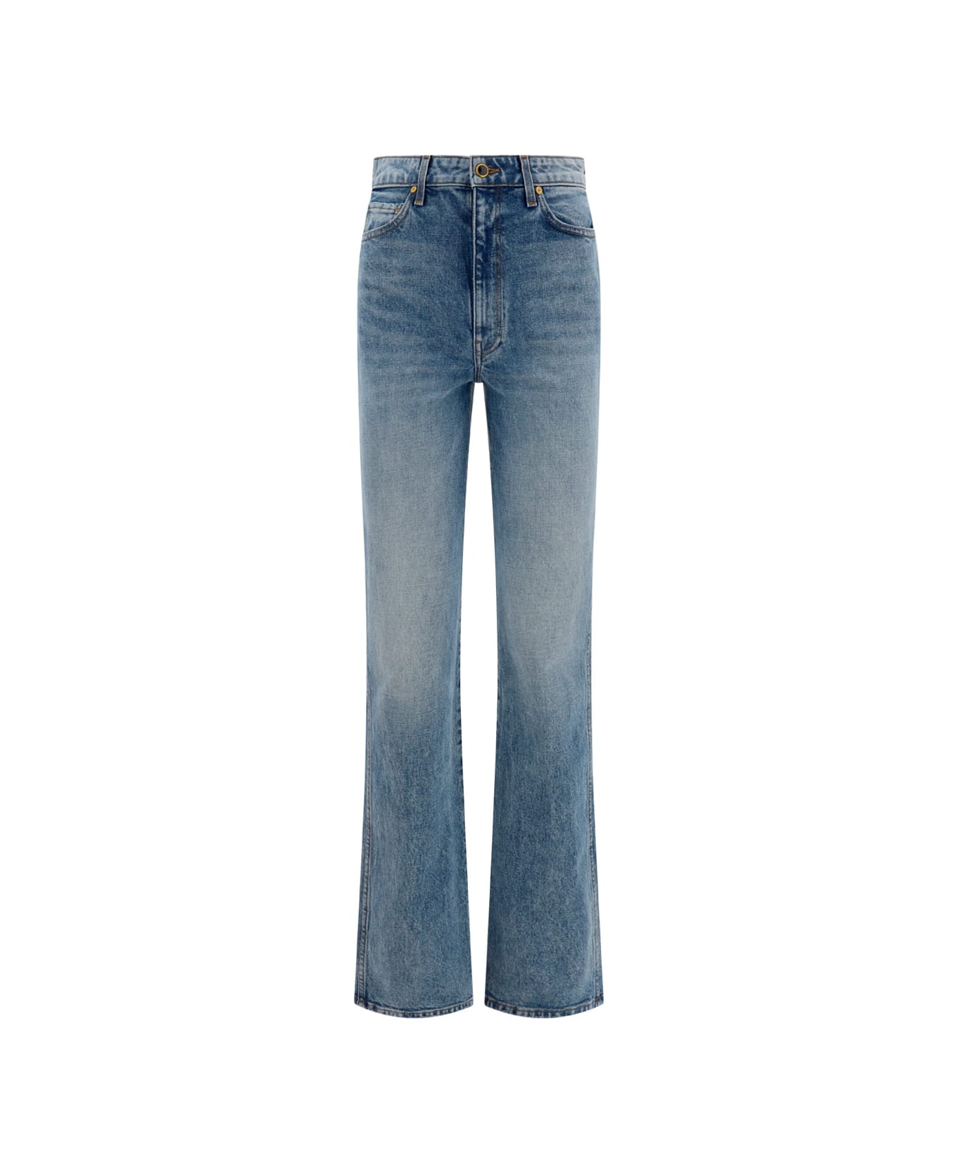 Cotton danielle jeans by khaite, five-pocket straight style, front button and zipper closure, waistband loops.