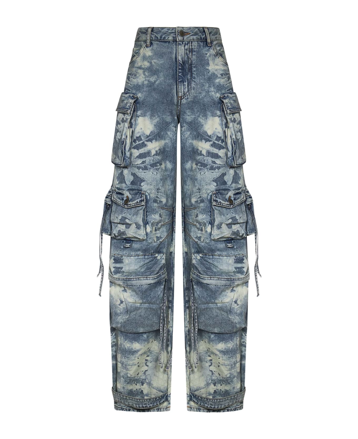 Composition: Covered Front Closure, Metal Logo Button Waist With Belt Loops Five Pocket Design, Pleated Coin Pocket; Multiple Bellows Pockets, With Flap, Zip Closure And Metal Buttons Closure At Legs Logo Embroidery At Back Pocket; Logo Patch At Back Waistband Adjustable Strap At Legs Bottom Bleached Effect Relaxed, Oversized Fit Bleach Blue Color , 100% Cotton Made In Italy