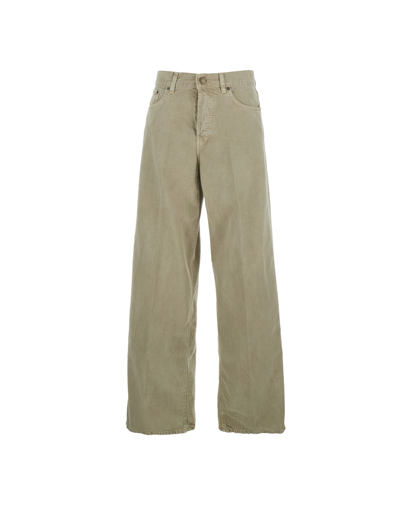 Jeans Khaki Green Belt loops Button closure on the front Logo patch on the back Wide leg Straight hem Five-pocket design Denim Baggy fit