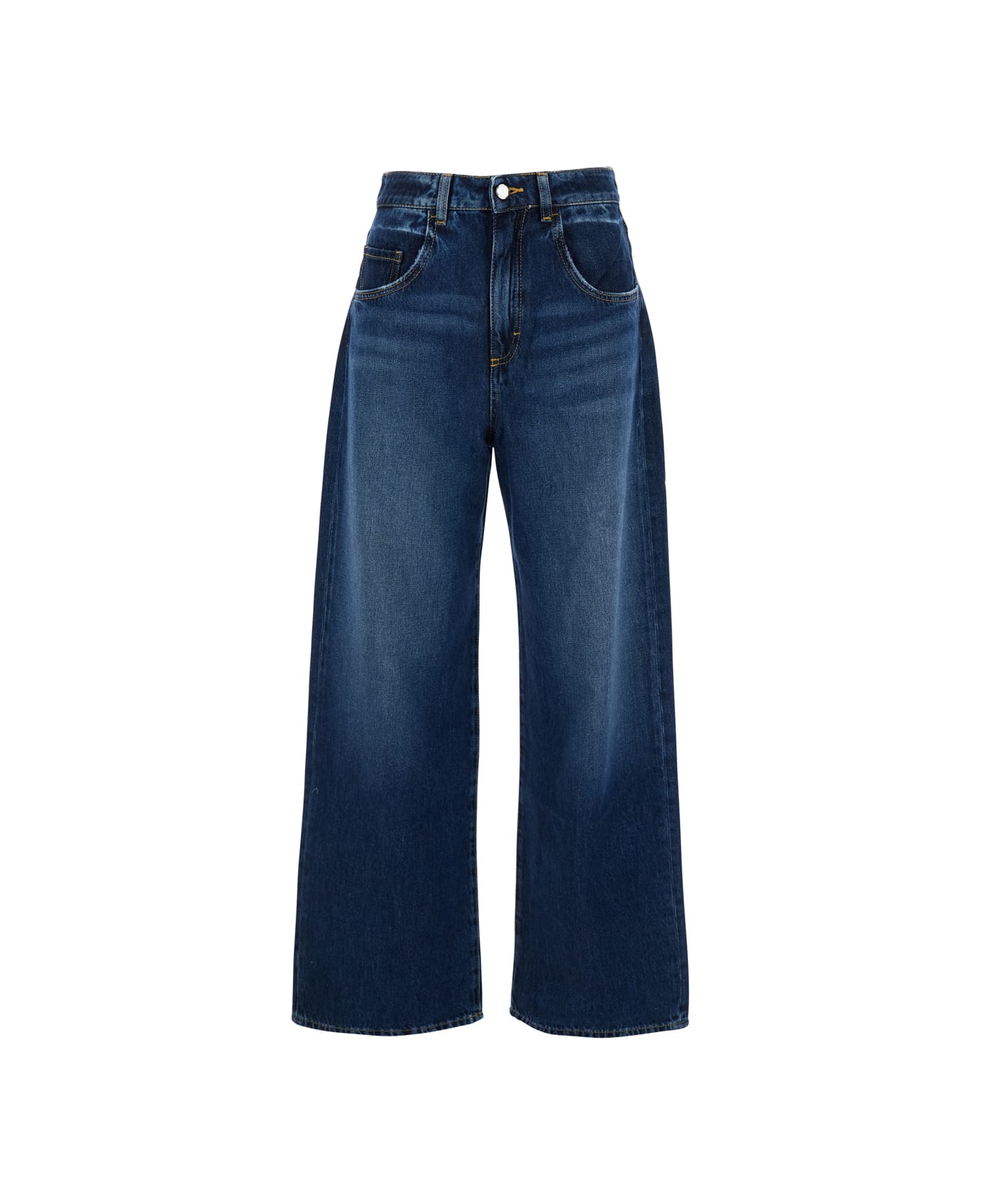 Jeans Blue Medium rise Belt loops Front button and zip closure Logo patch on the rear Wide leg Straight hem Five-pocket style Denim Relaxed fit