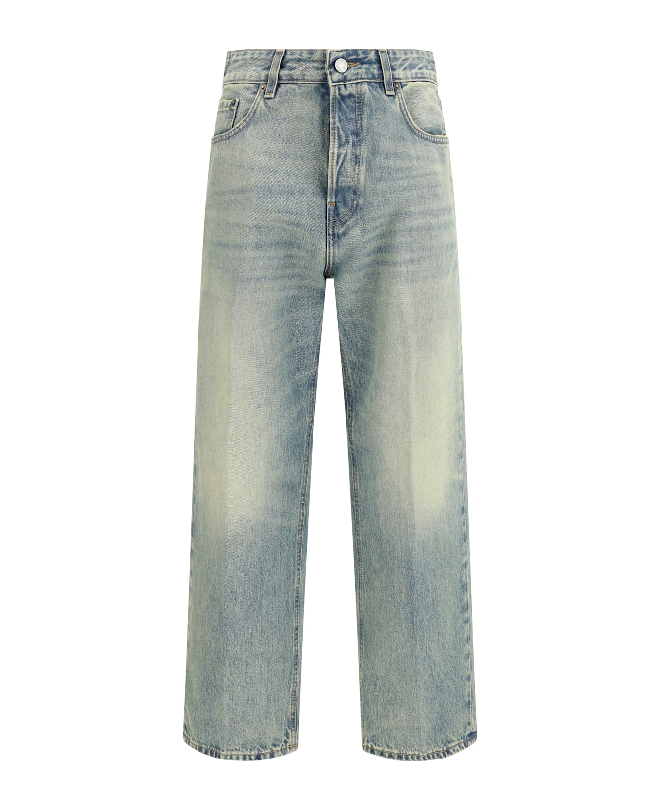 The straight-leg jeans by haikure offer a clean, contemporary take on classic denim. crafted from cotton denim, they feature a mid-rise waist with a front button fastening and belt loops. the five-pocket design keeps the look essential, while the leather logo patch at the back adds a subtle signature detail. the straight leg creates a versatile silhouette, perfect for everyday wear.