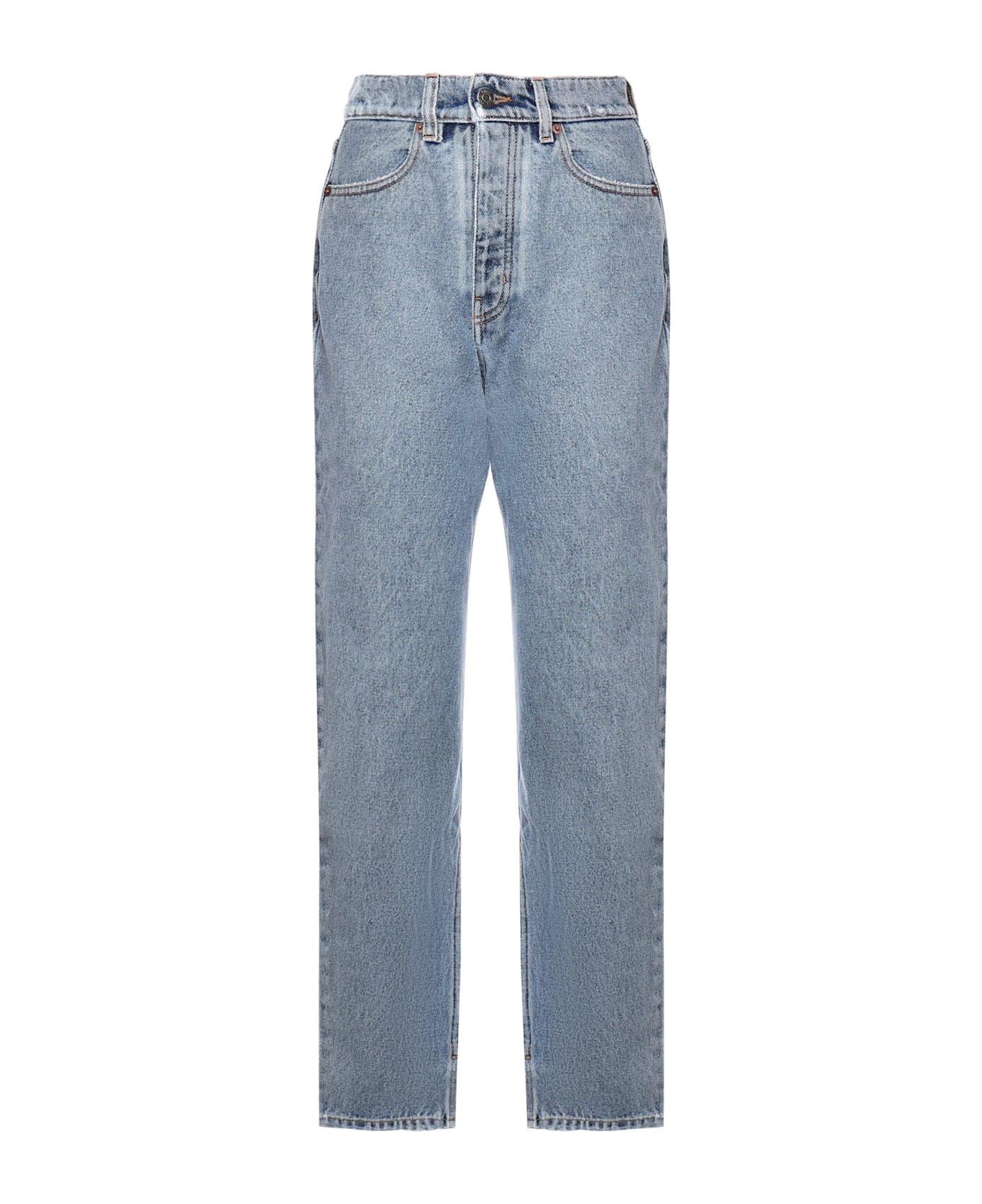 - Made of cotton denim - Button closure - Five pockets - High waist with belt loops - Logo patch - Made in Italy - Size shown is 25 - Designer color: Tiger Lily Blue